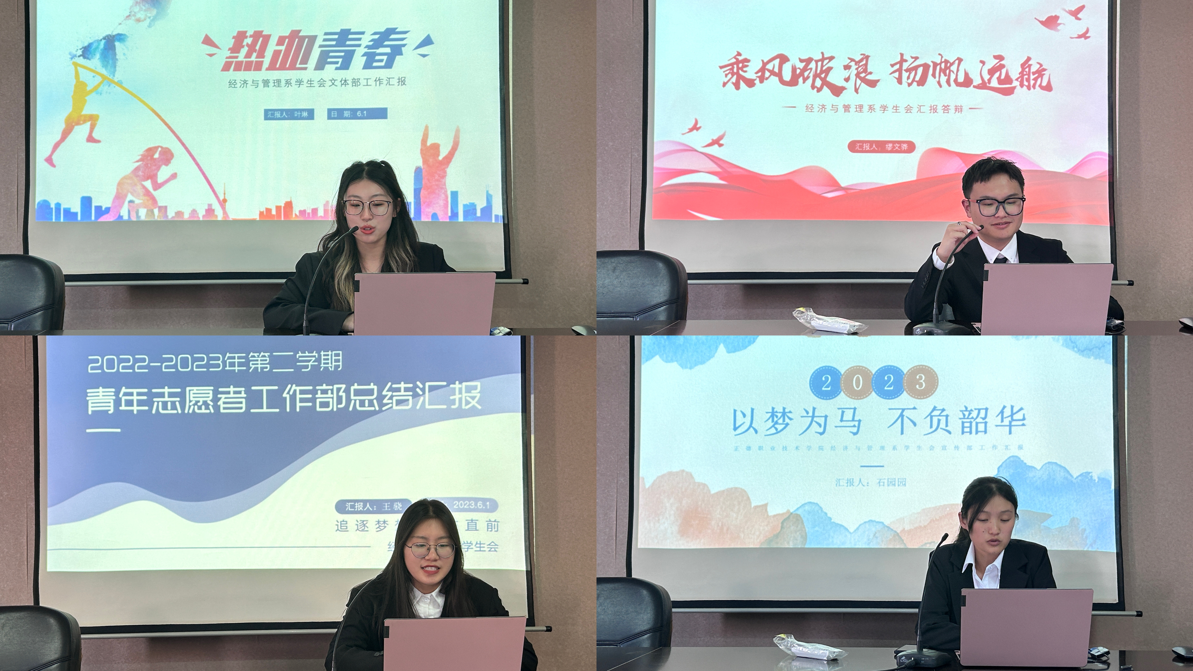 因为付出,所以成就,正是谦虚,才有向荣。此次学生会述职评议会暨换届竞选答辩会充分展现出经济与管理系学生干部的良好风貌,希望他们以此次大会作为新的起点,做好自身定位、不断深化改革、强化服务意识、牢记全心全意为同学们服务的根本宗旨,以高度的责任感和使命感完成工作,使我系团学工作更加充满活力,蓬勃生长,未来可期。