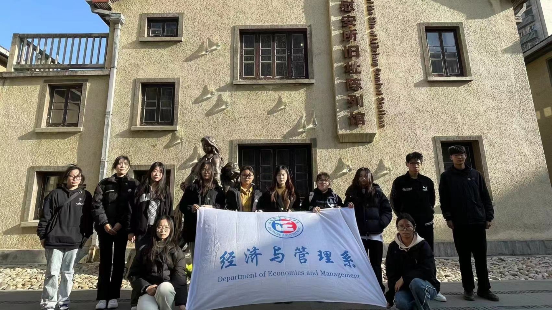 2023年12月7日,经济与管理系组织团员青年参观南京利济巷慰安所旧址陈列馆,带领他们全面了解日军“慰安妇”制度的发展脉络,揭示日军侵犯女性人权、违反人类道义的罪行,牢记和平与发展的时代主题,树立人类命运共同体意识。