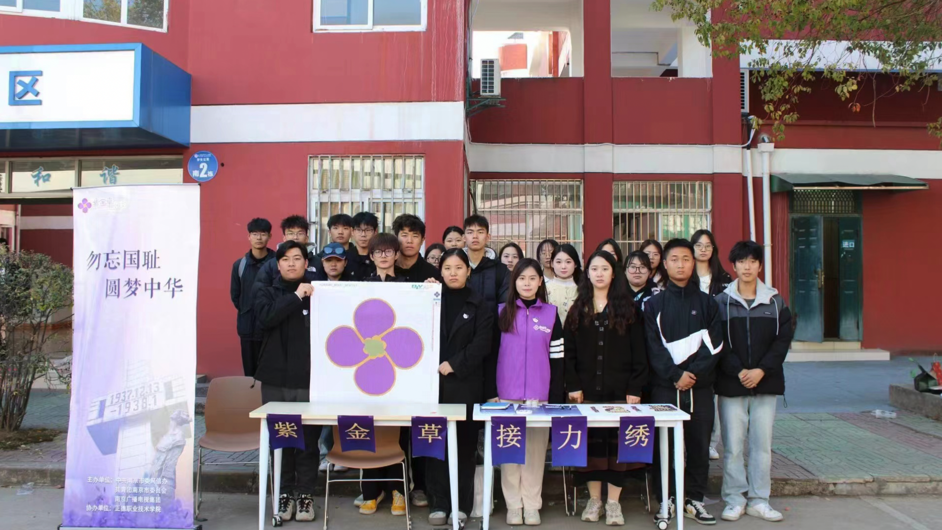 绣的是和平愿,聚的是爱国心。12月8日,在校园主干道上,同学们也纷纷停下脚步参与接力活动。参加一次接力绣、写下一句爱国情、种下一粒和平种、领取一枚纪念章,同学们用实际行动表达着自己的心愿。