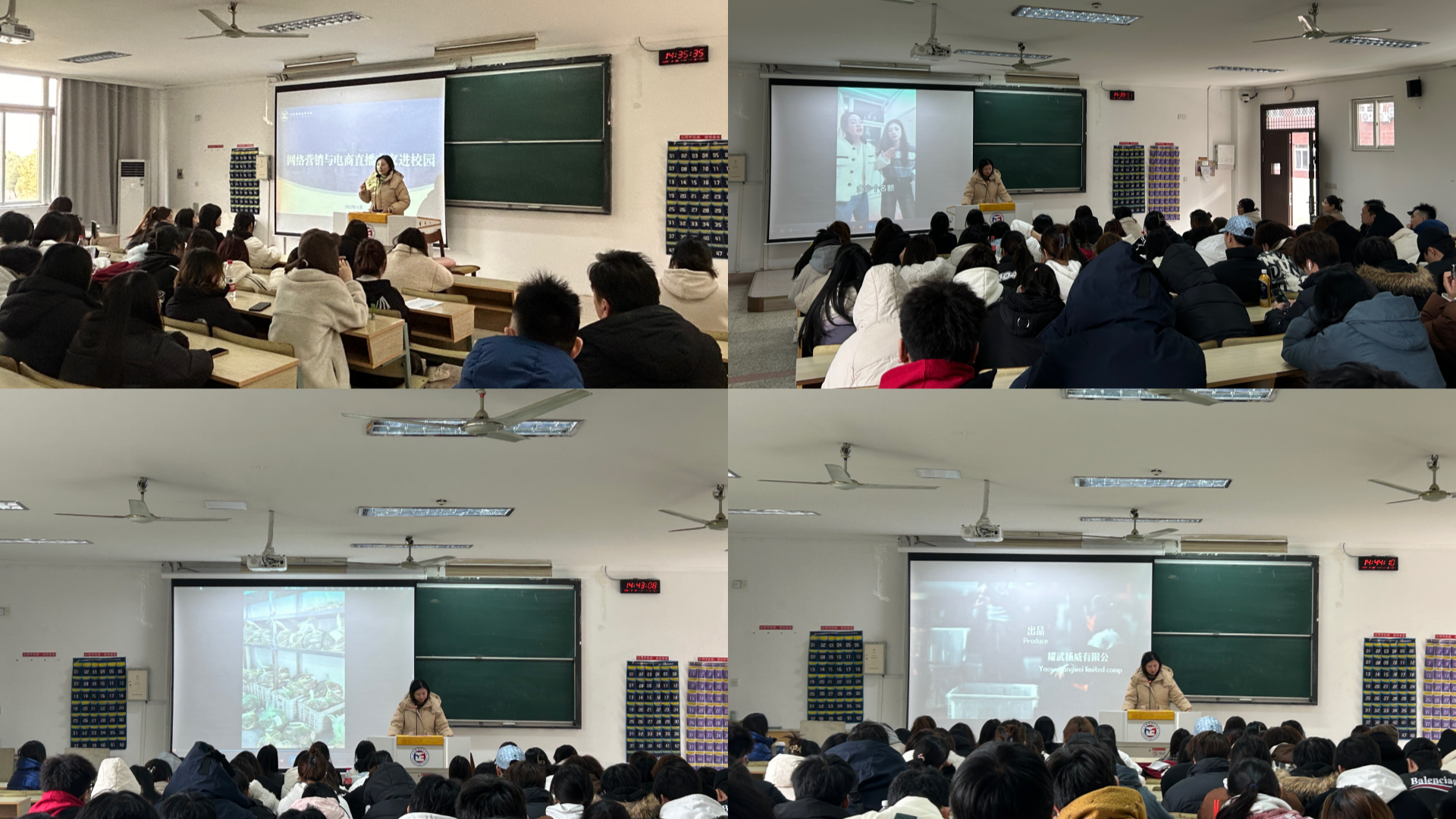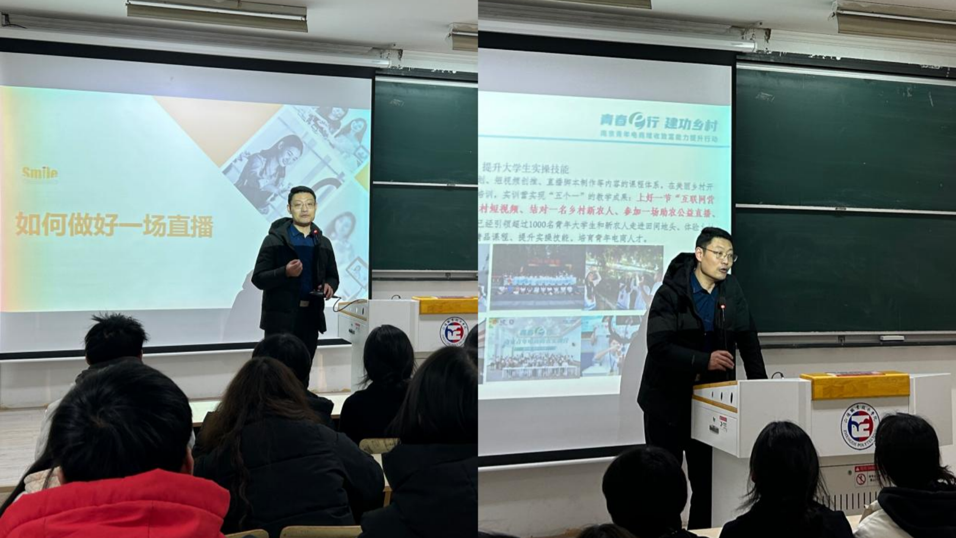 为全面贯彻党的二十大精神,认真落实习近平总书记关于青年工作的重要思想和关于“三农”工作的重要论述,深入实施“四进四促”乡村振兴青春行动,不断提升我系学生的职业素养与专业品质,12月28日,在院团委的指导下,经济与管理系开展“青春e行,建功乡村”直播专家进校园活动,行知微笑学堂讲师团、经管系各辅导员、班主任以及来自网络营销与电商直播、市场营销专业的120名学生参加本次活动。