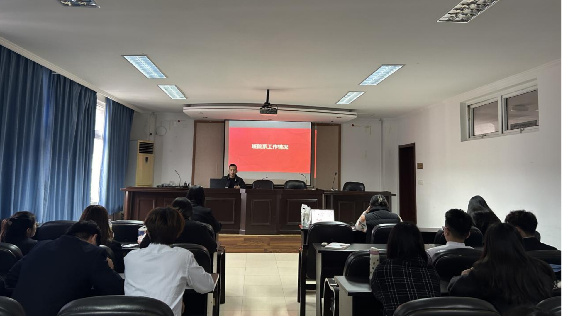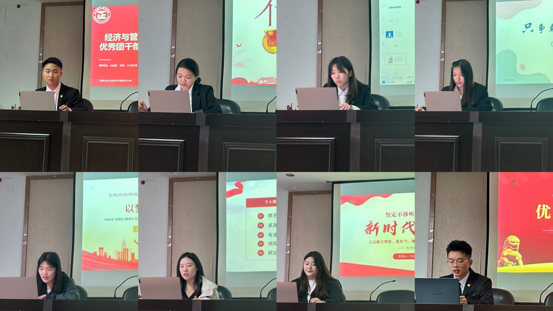 接着,申报“五四红旗团支部”的团支部代表依次从团务工作、组织生活、社会服务、创新实践等方面进行了详细的展示和阐述。他们通过PPT、视频等形式,生动形象地展示了团支部在推动团员青年成长成才、服务学校和社会等方面的积极作用和取得的显著成效,着力提升团支部的引领力、组织力、服务力。