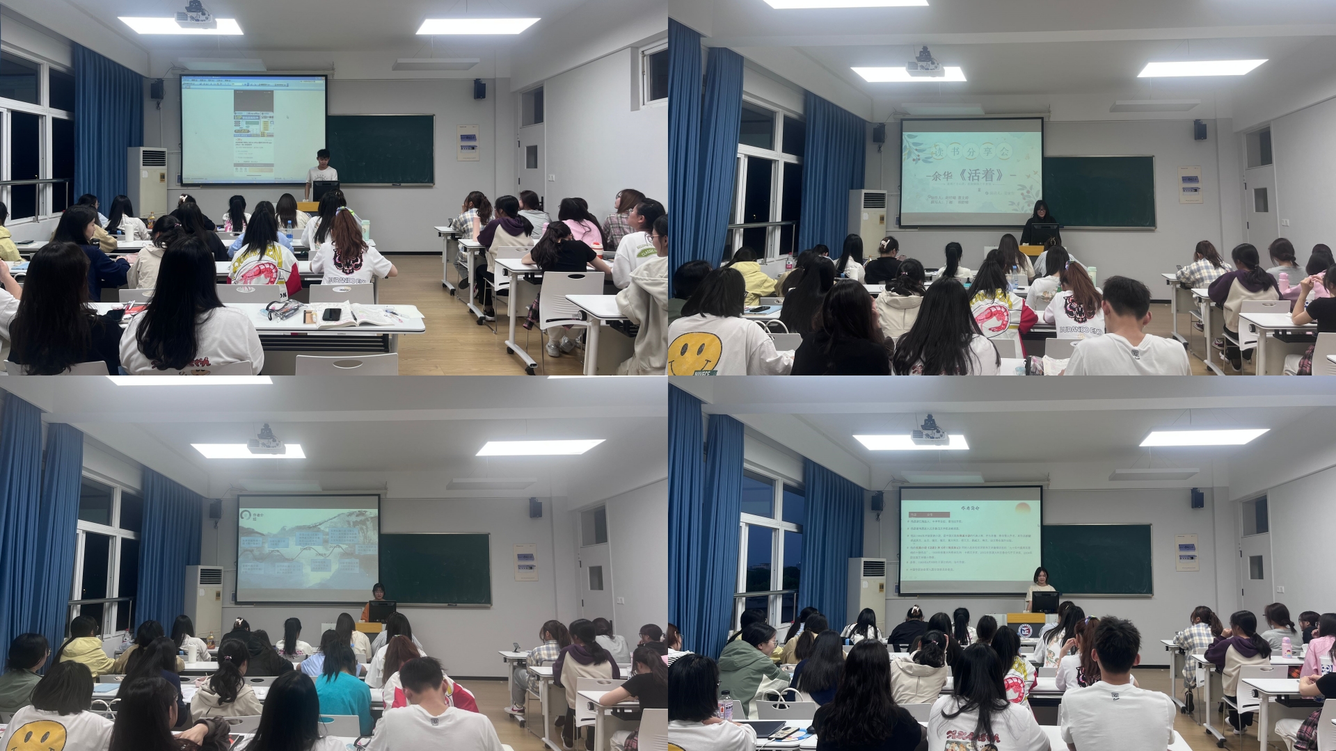 本次分享以小组形式进行,共分成8个小组,有的小组分享了实用性高的教辅用书,也有小组分享了自己喜爱的小说。小组代表田俊杰同学结合自己备考经验,给同学们分享了《四级考前冲刺》,归纳重要考点,助力考前提分;孙佳慧同学分享了自己最喜爱的小说《活着》,通过福贵的一生,激励同学们遇到困难,不要放弃希望。小组成员们也结合学习和生活实际畅谈了自己的理解、看法和心得。