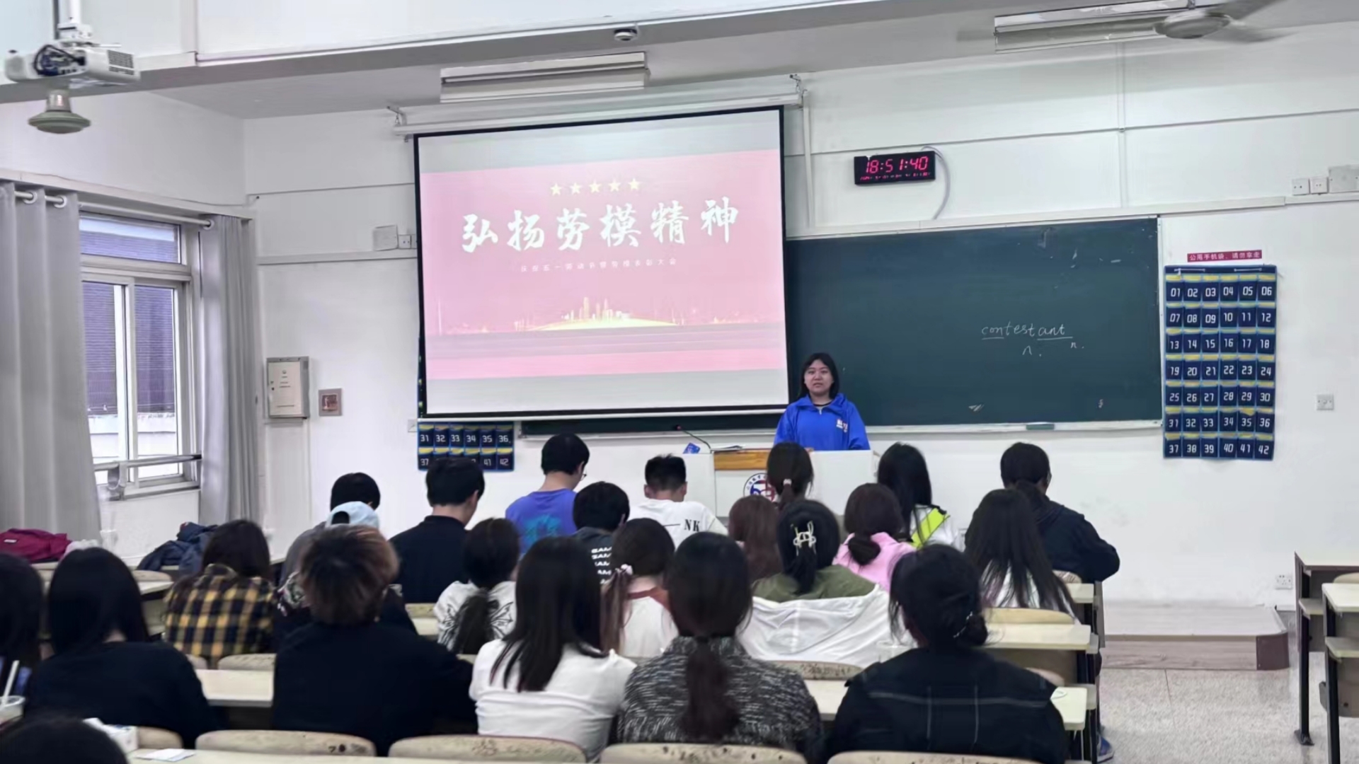 为深入学习贯彻党的二十大精神和习近平总书记关于劳动教育的重要论述,培养学生爱岗敬业、争创一流、艰苦奋斗、勇于创新、淡泊名利、甘于奉献的劳模精神,经济与管理系于6月11日在2304教室召开“弘扬劳模精神,凝聚奋斗力量”主题班会。233305班全体同学参加,班委郭培鑫主讲。