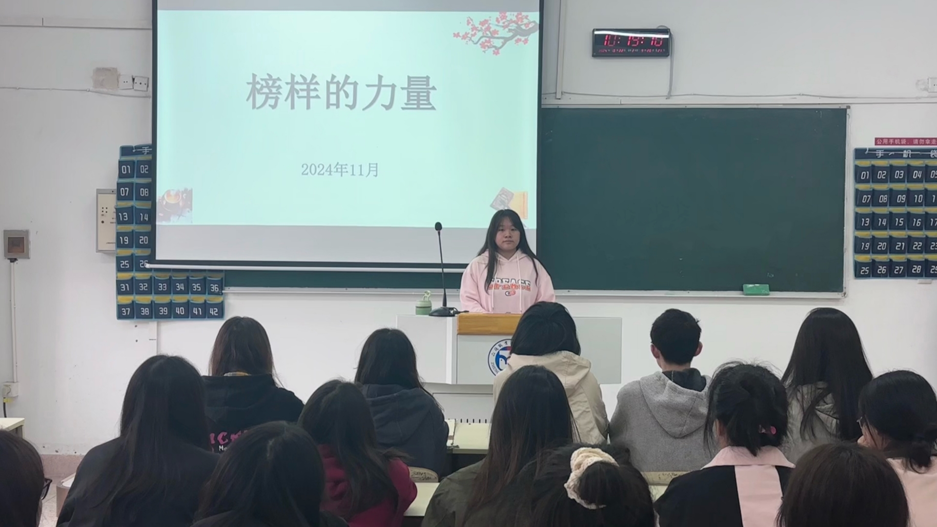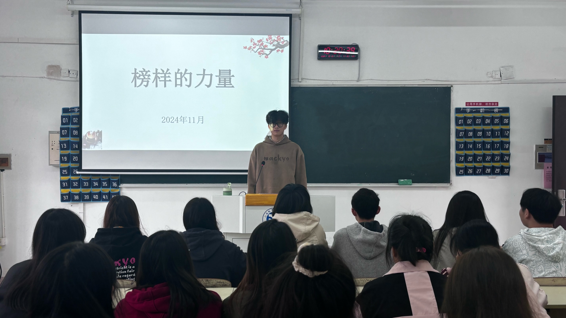 为发挥朋辈引领作用,彰显优秀榜样力量,教育引导广大青年向榜样看齐,更好地认识自己,明确目标,11月20日,经济与管理系在1104教室组织开展“榜样的力量”分享会。本次分享会辅导员呙竹云主持, 233302、233303班全体学生参加。