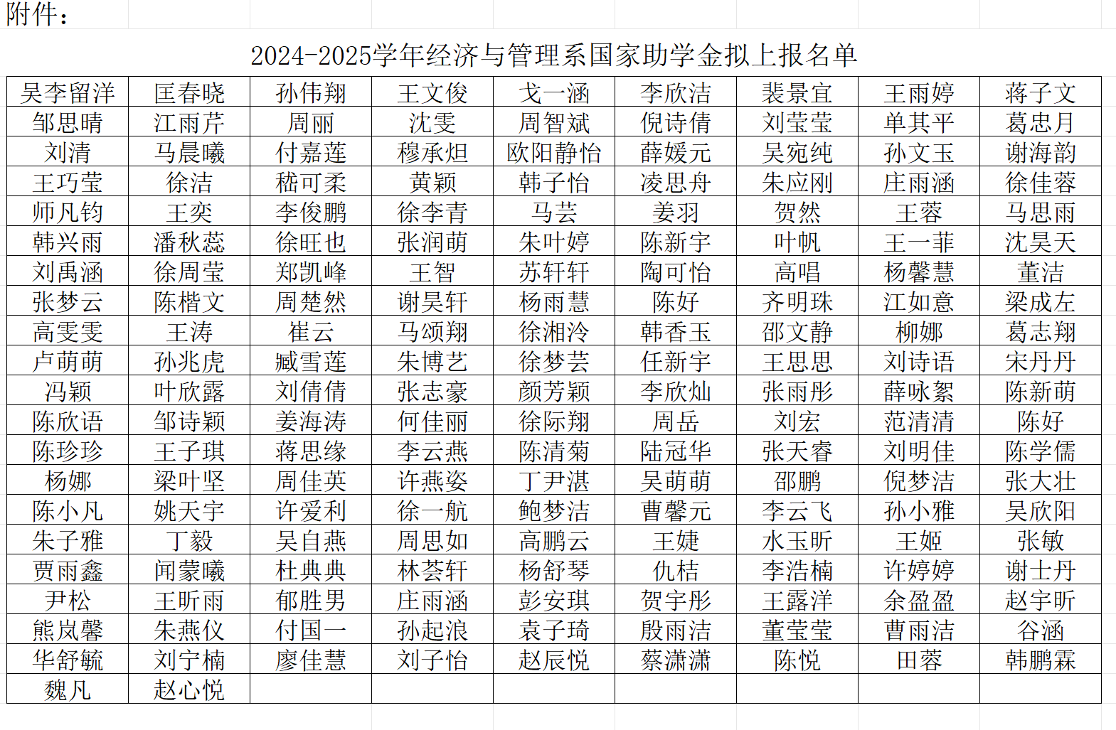 附件:2024-2025学年经济与管理系国家助学金拟上报名单