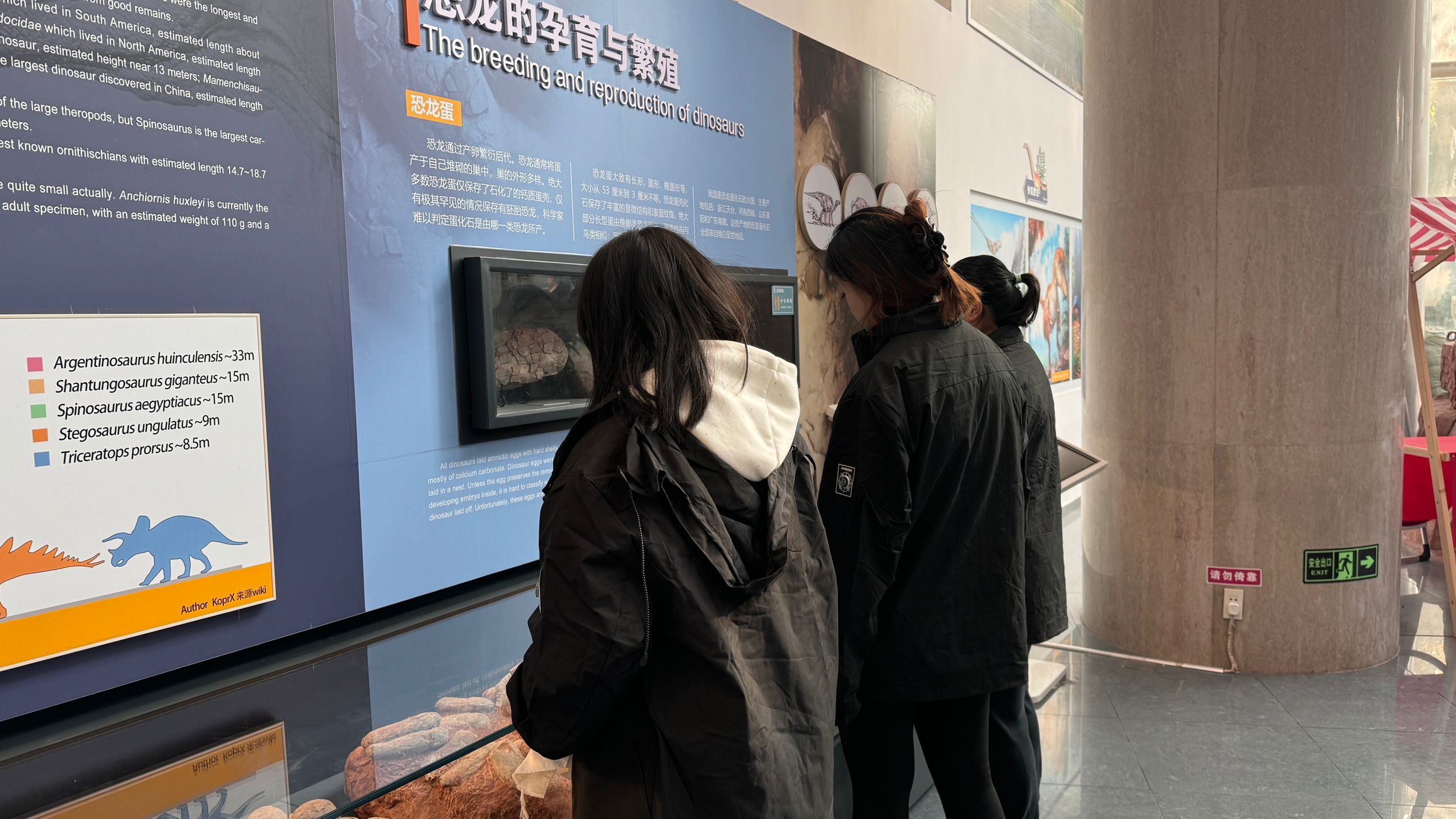 接着,同学们沿着“上山之路”前往二楼展厅,这是一条展示南京地区震旦系-侏罗纪系地层仿真岩层剖面的化石楼梯,两侧镶嵌着许多南京地区的化石,为同学们提供了一个直观了解地球历史和生物演化的平台。在二楼展厅中,同学们以“生命的进化”为轴线,从地球的形成到生命的起源,从早期的演化到生物的爆发,从古代生物种的单调简陋到新生代生命的鼎盛繁荣,逐一了解了螺类、珊瑚、鱼类、鸟类以及各种脊椎动物、爬行动物、哺乳动物等生物的历史和现状。这些详细的资料和充足的考证,让同学们深刻感受到了生命一路迈向蓬勃的历程。
