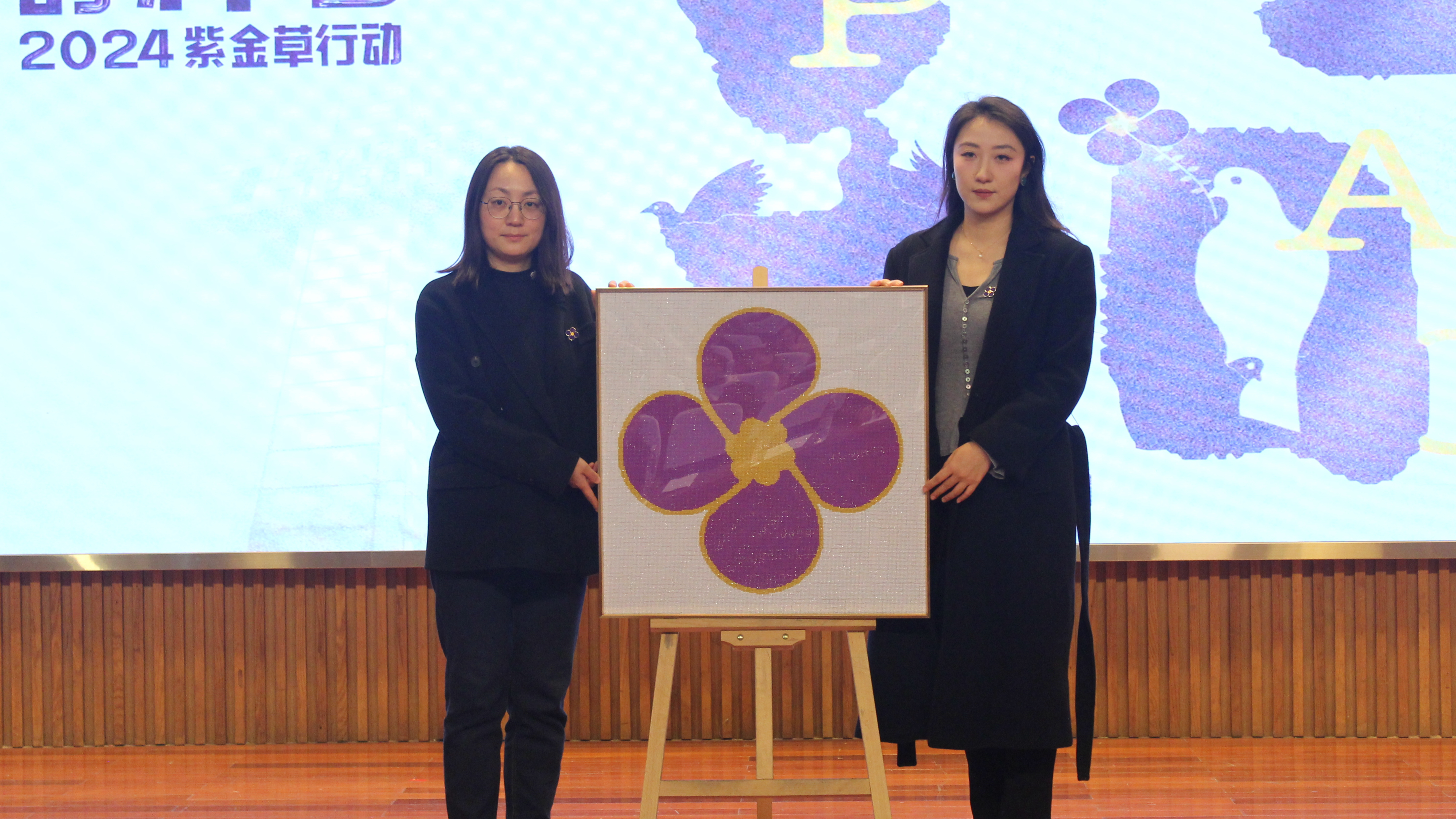 周慧将紫金草绣赠予南京电视台2024紫金草行动项目组。同时,她在课上表示,我院作为南京电视台紫金草行动和平教育基地,始终坚持接力宣传历史,加强爱国主义教育。“每年的国家公祭日,种下一颗和平种、戴上一枚纪念章已经成为师生的传统仪式和深刻记忆。”
