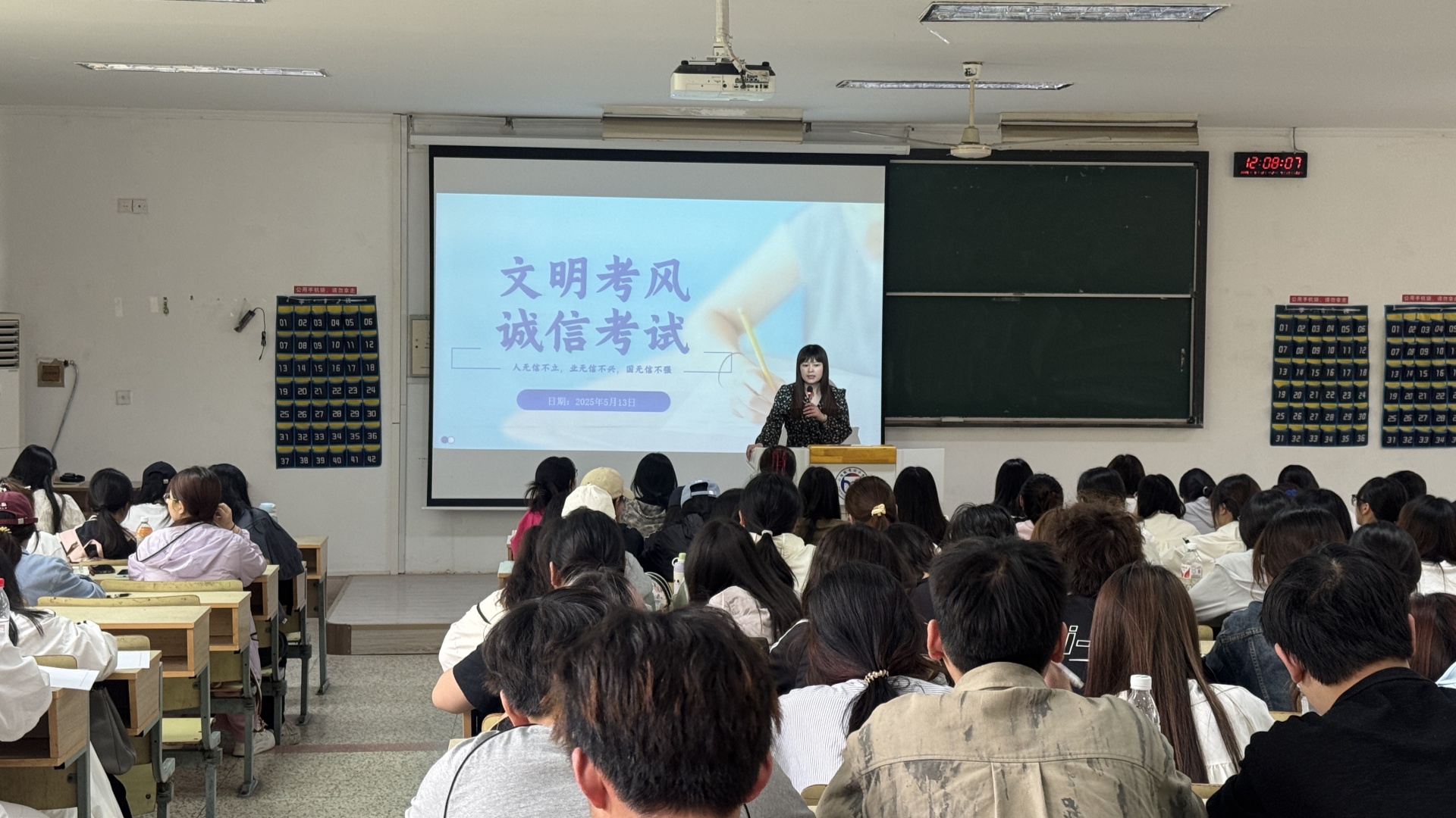 活动伊始,辅导员呙竹云着重强调了诚信考试的重要性。她指出,诚信是为人之本,更是学术之基,作为新时代的大学生,应当自觉遵守考试纪律,坚决抵制任何形式的作弊行为,以实际行动维护考试的公平、公正与严肃性。呙竹云还结合近年来高校中发生的考试作弊案例,深入剖析了作弊行为的严重后果,从学业处分到个人声誉,为同学们敲响了警钟。