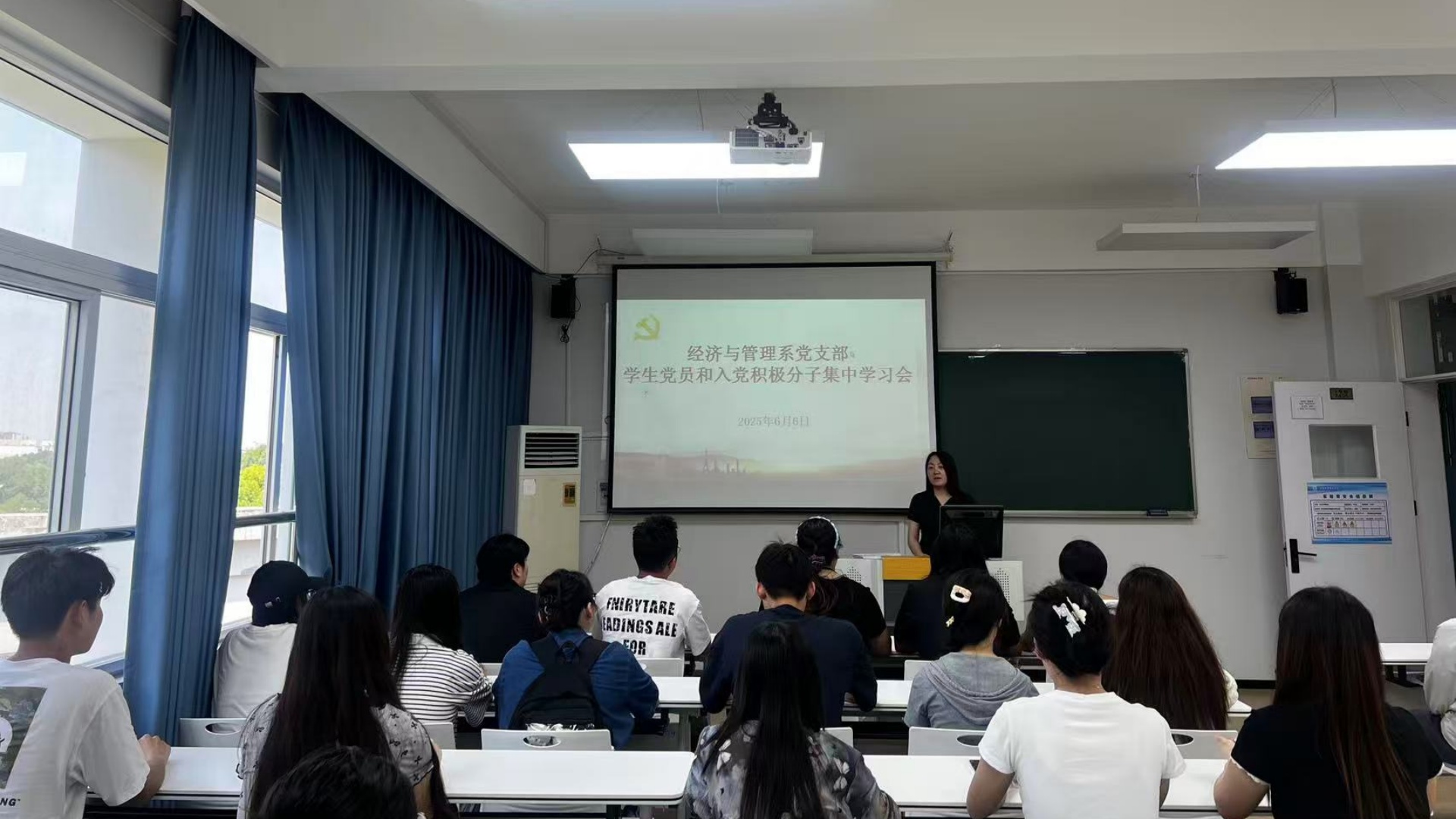 为进一步加强毕业生党员教育管理,引导入党积极分子坚定理想信念,2025年6月6日,经济与管理系在7405教室召开毕业生党员及入党积极分子专题会议。系党支部书记周慧、组织委员呙竹云及全体毕业生党员、2023级入党积极分子参加会议。