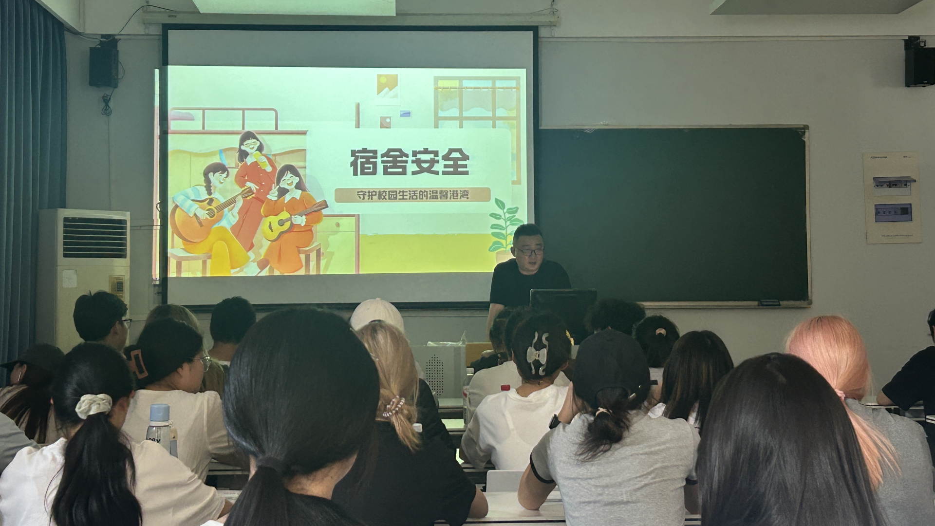 随后,高扬围绕宿舍安全、消防安全、财产安全及网络安全等多个维度,进行了全面而细致的安全知识讲解。他不仅结合学院实际情况,对宿舍内违规使用电器、私拉乱接电线等常见问题提出了明确的整改要求,还就如何防范网络诈骗、保护个人信息安全等热点问题给出了实用的建议。
