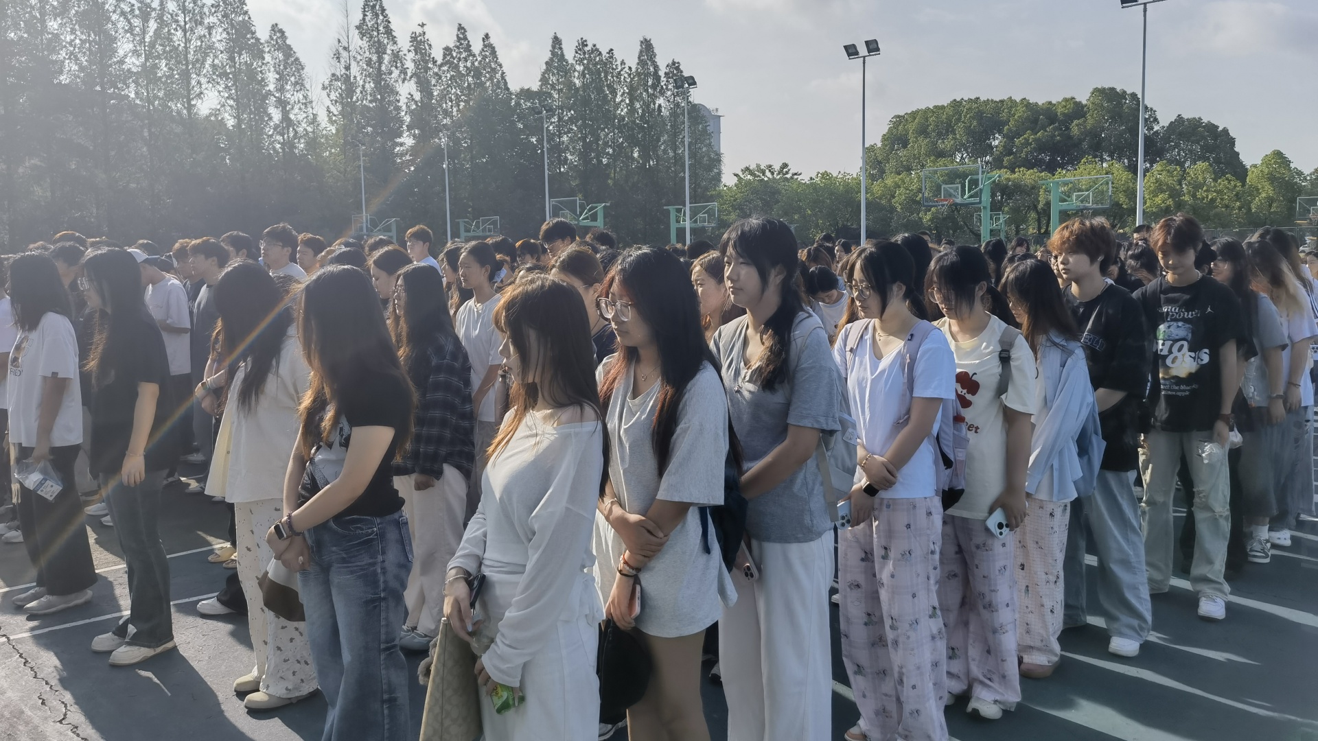 伴随着激昂的《义勇军进行曲》,全场师生庄严肃立,行注目礼。当五星红旗冉冉升起,迎风飘扬,全体师生齐声高唱国歌,歌声嘹亮,饱含着对祖国的无限热爱与崇高敬意。