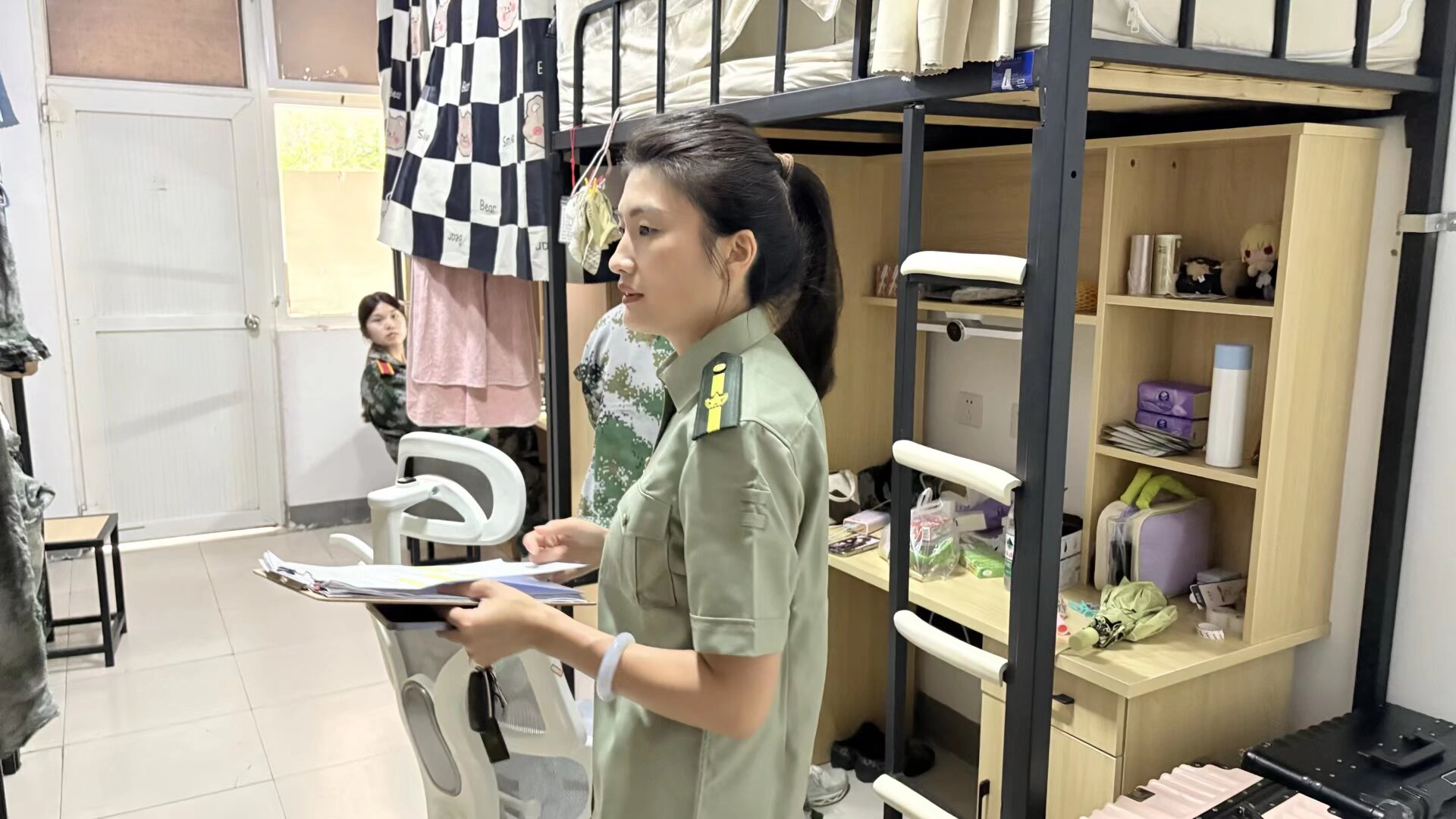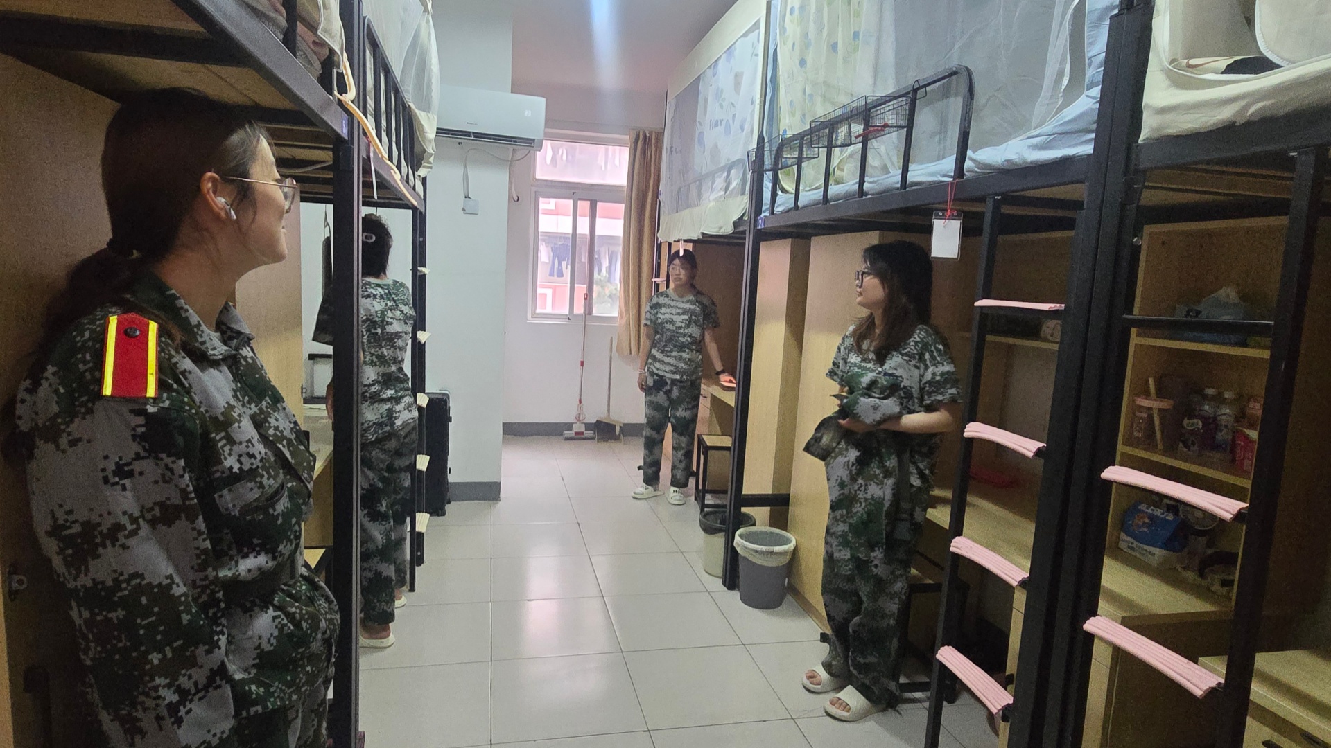 与此同时,大一三位辅导员们也走进南三宿舍,与新生们面对面交流。辅导员们仔细查看宿舍居住环境,询问新生军训期间的身体状况与适应情况,倾听大家在训练、生活中遇到的困难。针对部分新生因军训强度大产生的疲惫情绪,辅导员耐心疏导,鼓励大家发扬坚持精神;对于新生提出的课程安排、校园设施使用等疑问,也逐一进行解答。“军训虽然辛苦,但能磨练意志,有任何问题随时找老师沟通。” 辅导员的暖心话语让新生们倍感亲切,有效缓解了大家的陌生感与焦虑感。