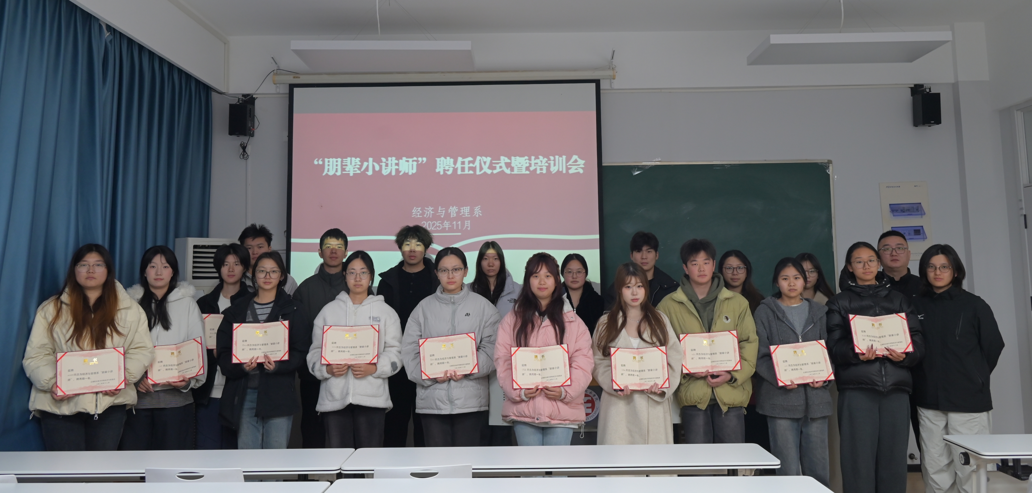 为进一步夯实学风建设基础,充分发挥学生榜样的示范引领作用,经济与管理系于2025年12月1日在7405教室组织开展了2024级“朋辈小讲师”聘任仪式暨专题培训活动。系党支部书记、副主任周慧,相关辅导员代表以及参与竞聘的2024级学生共同出席了本次活动 。