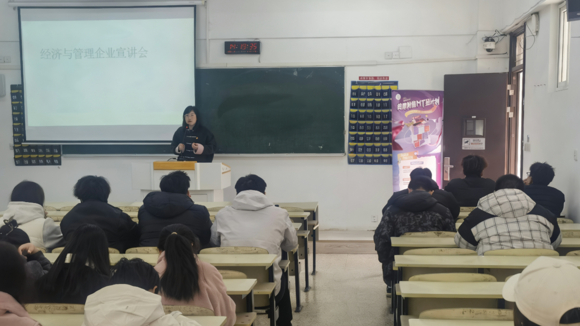 为搭建校企人才对接桥梁,助力学子明确职业方向,经济与管理系邀请南京揽胜阁电子商务有限公司于2025年12月11日在2306教室开展企业宣讲会。来自市场营销、国际经济与贸易等专业的学生代表参加了本次宣讲会。宣讲会由经济与管理系副主任(主持工作)刘春子主持。
