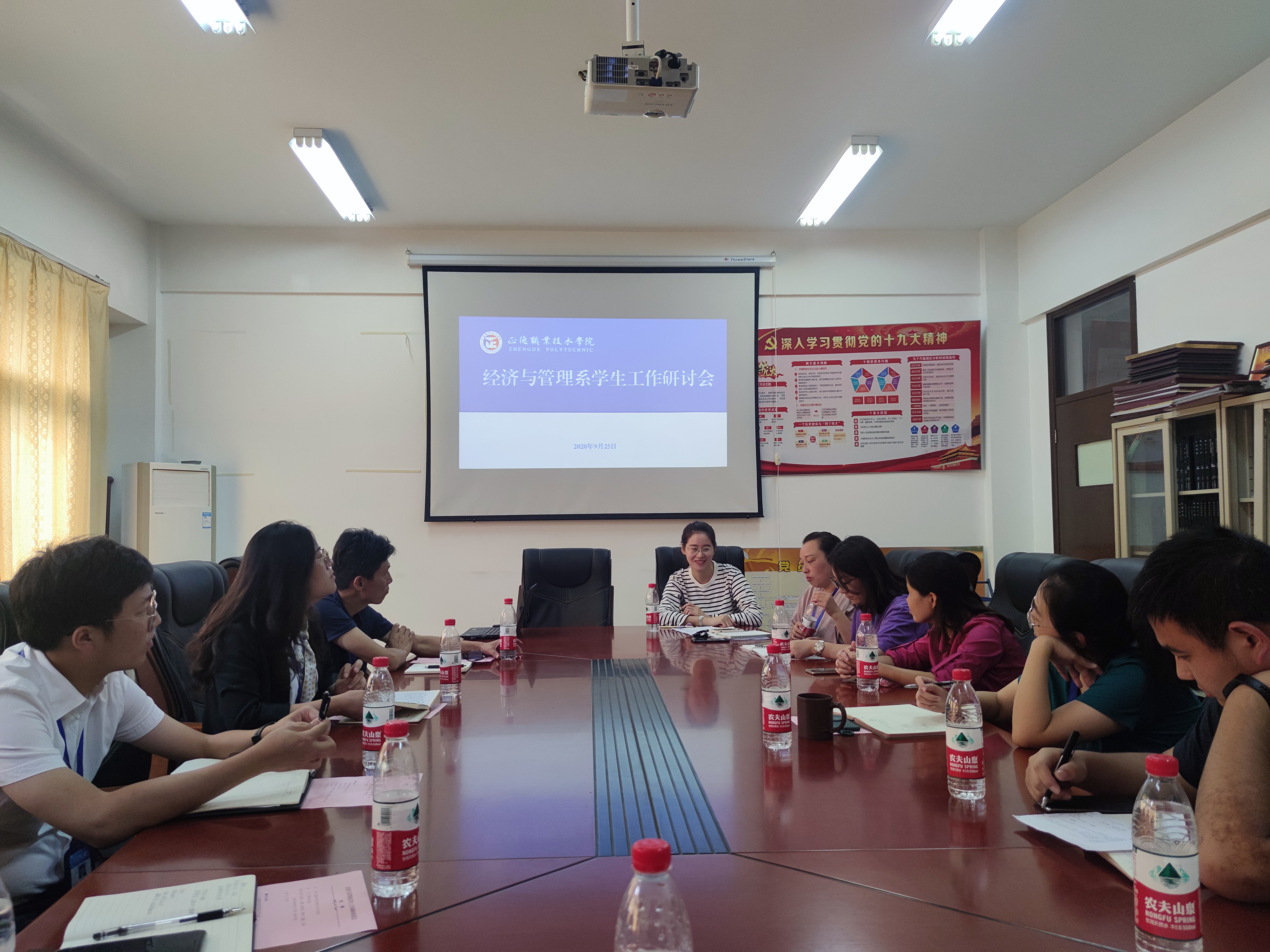 2020年9月25日上午,任慈副院长到我系调研学生工作,院长助理王健,学生处、后勤处、保卫处主要负责人参与调研。经济与管理系主任王燕、副主任祖国,全体辅导员以及教师代表参加了调研汇报。
