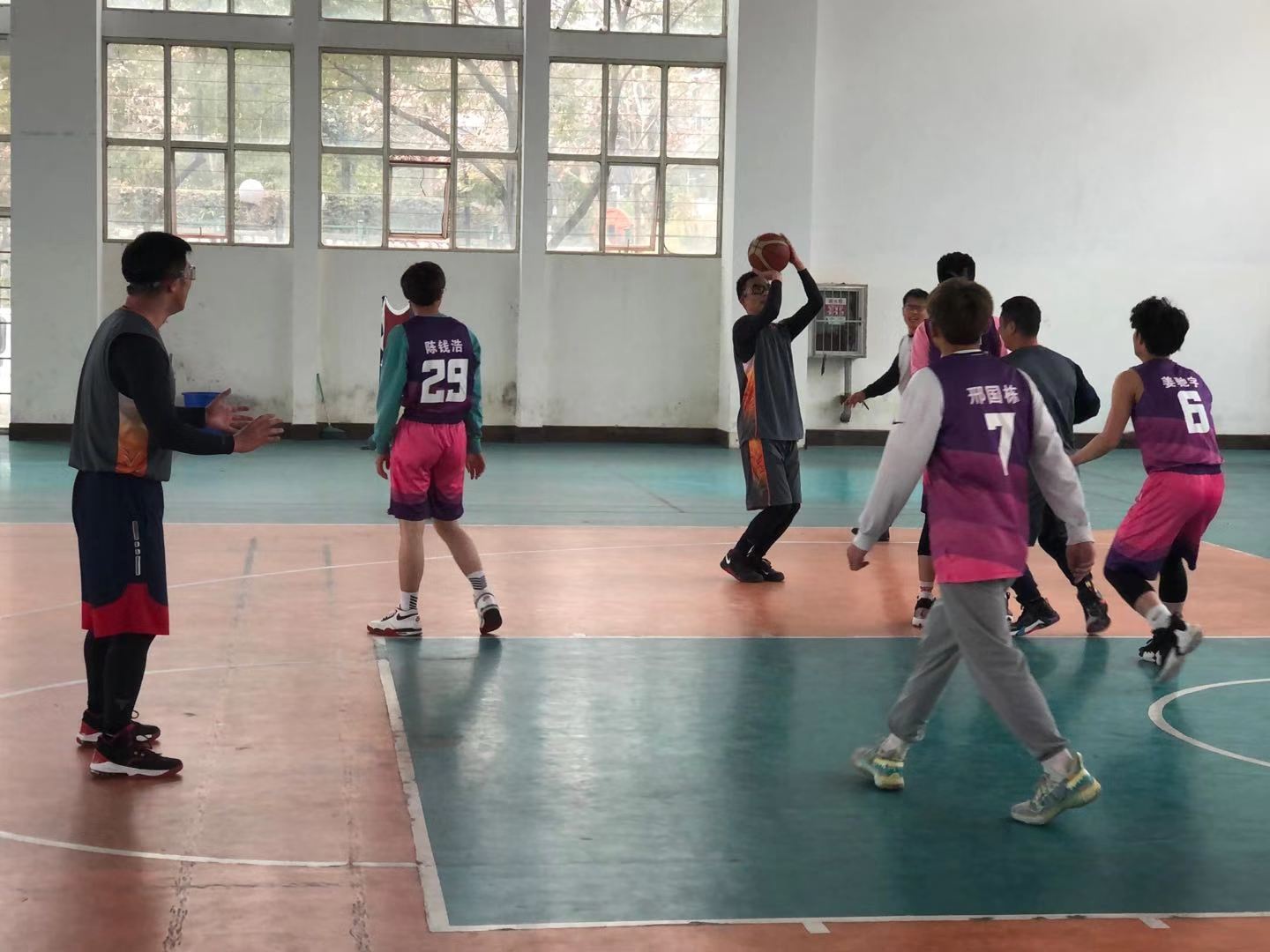 为丰富学生的课余生活,增强学生团体之间的凝聚力和团队协作能力,感悟竞技精神,12月18日,经济与管理系篮球队与学院教职工篮球队友谊赛在体育馆顺利举行。