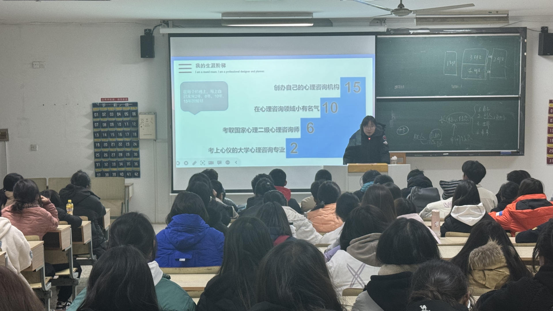 为进一步促进大一学生正确树立职业规划意识,充分发挥辅导员在学生教育成才中的重要作用。经济与管理系于2023年12月4日在1202教室开展“回首过去,展望未来”职业生涯规划教育主题班会。2023级大数据与会计4、5班和市场营销2班、网络营销与直播电商班全体同学参加,班会由辅导员刘妍主持。