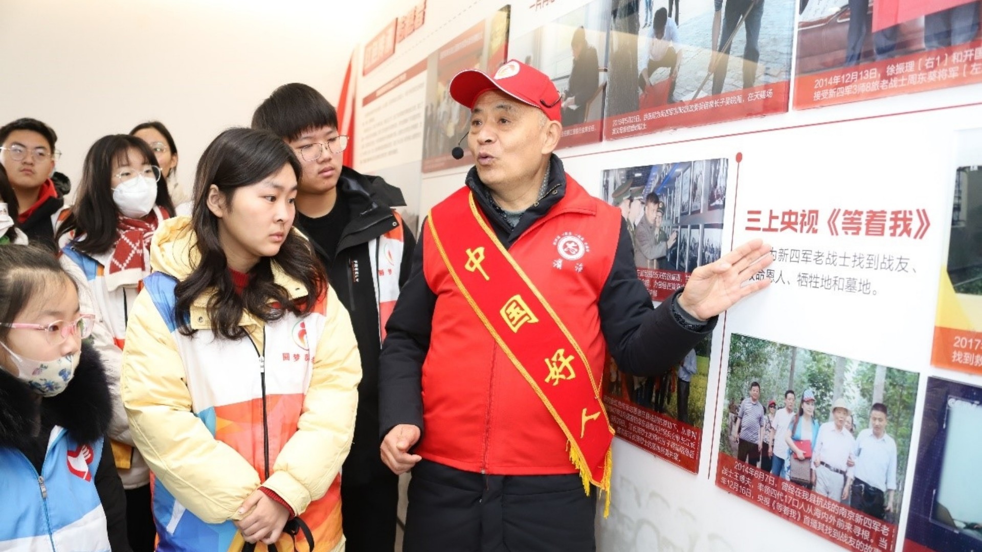 吴李留洋同学带领45名学生志愿者一同听“中国好人”、“江苏省道德模范”徐振理讲述红色故事。这位退役老兵历时39年,踏访千山万水,足迹遍及家乡田野、档案馆和相关纪念馆,为新四军老战士找到战友和救命恩人。她和志愿者们深受触动,开展了“玉龙路创文明”志愿服务活动、讲述红色故事演讲比赛等等,立志做红色基因的传承人,做红色文化的传播者。