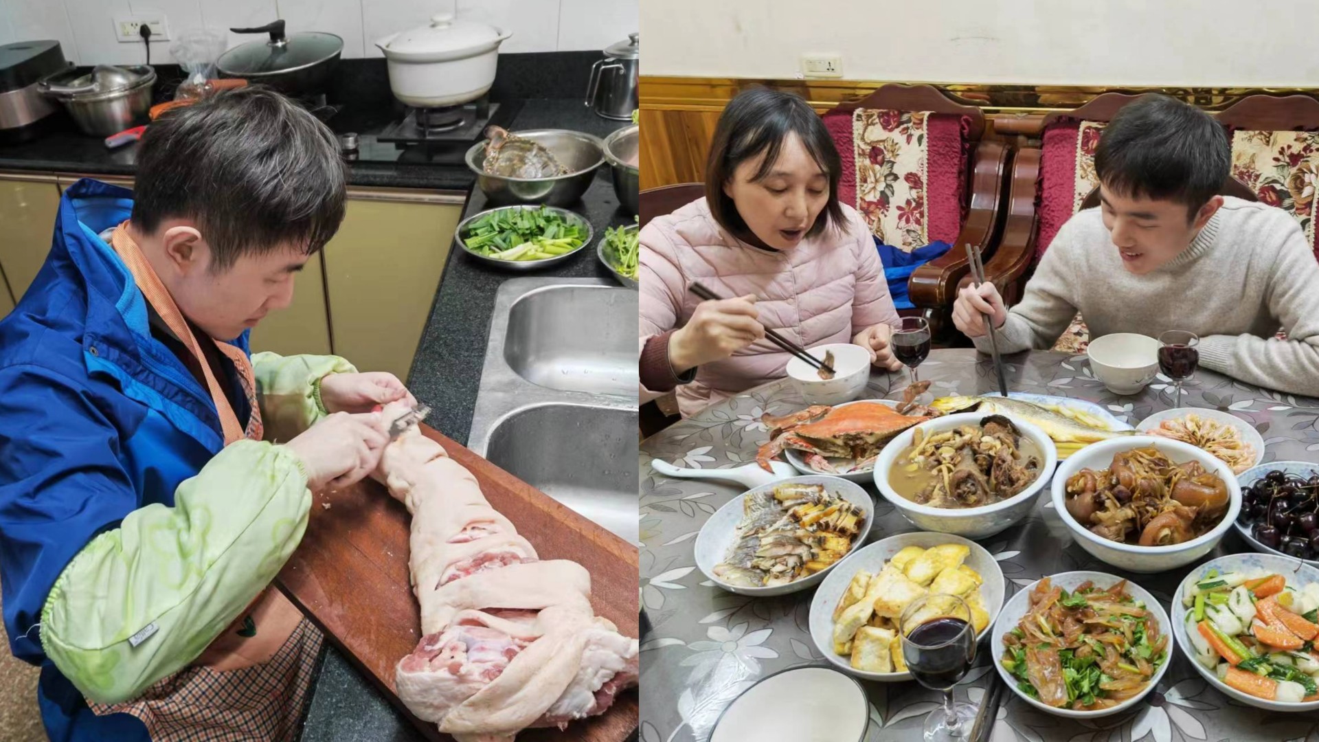 刘洋同学寒假时间在家里承担做家务活的任务,并学习给家人制作美味佳肴。他认为,除夕的夜饭,既是一年辛苦忙碌、辞别旧岁的重要时刻,又是具有祈望将来,迎接新年的特殊意义。因此,他与父母分工合作,做出了一顿丰盛的年夜饭。家人之间的温馨和关爱让这个快节奏的时代慢了下来,一家人敞开心扉、互相祝愿、情意浓浓。他说,“走过了坎坷的2022年,愿2023年的所有美好,如期而至。过往皆序章,未来可期盼。新的一年愿父母安康!”