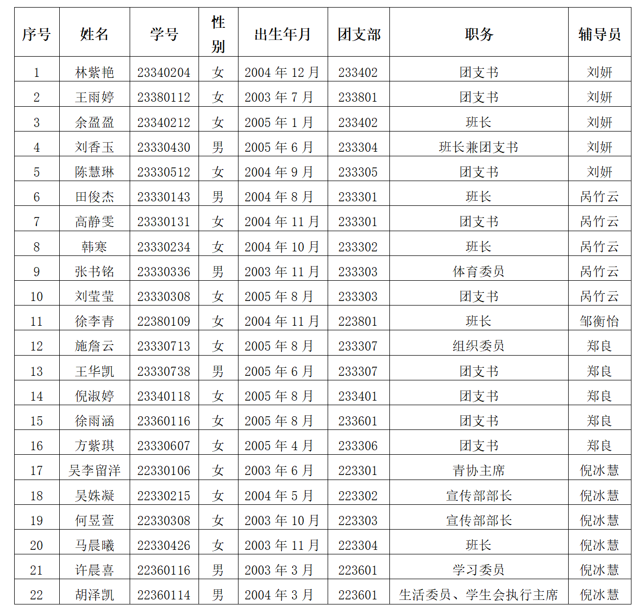 按照发展党员工作有关规定,根据群团组织推优情况,经支部委员会2024年3月18日研究,确定林紫艳、王雨婷等22位同志为入党积极分子。公示时间为:2024年3月19日-3月25日。对公示对象如有异议,请于公示期间与经济与管理系党支部联系。联系电话(传真):025-52111905;信箱:917072807@qq.com。