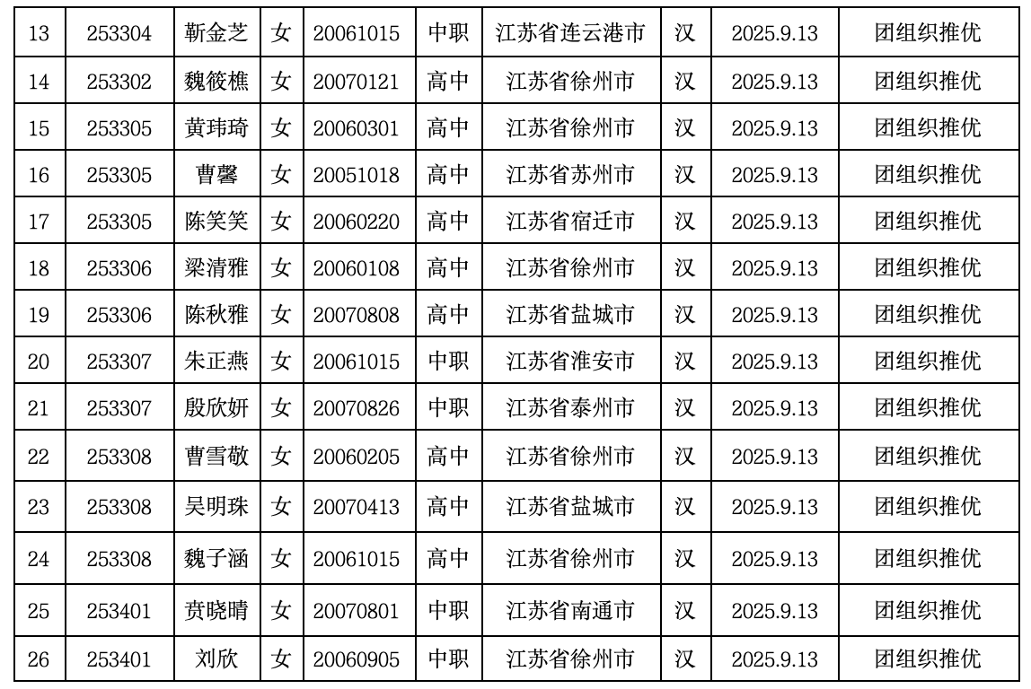 附:拟吸收入党积极分子名单
