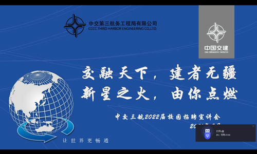 为切实做好本系毕业生就业工作,大力构建毕业生与用人单位的交流平台,积极为用人单位输送应用型人才,贯彻落实学院关于学生顶岗实习的要求,2022年4月12日艺术设计与建筑工程系招聘会活动正式启动,本次邀请中交三航局第三工程有限公司召开线上“空中招聘会”。