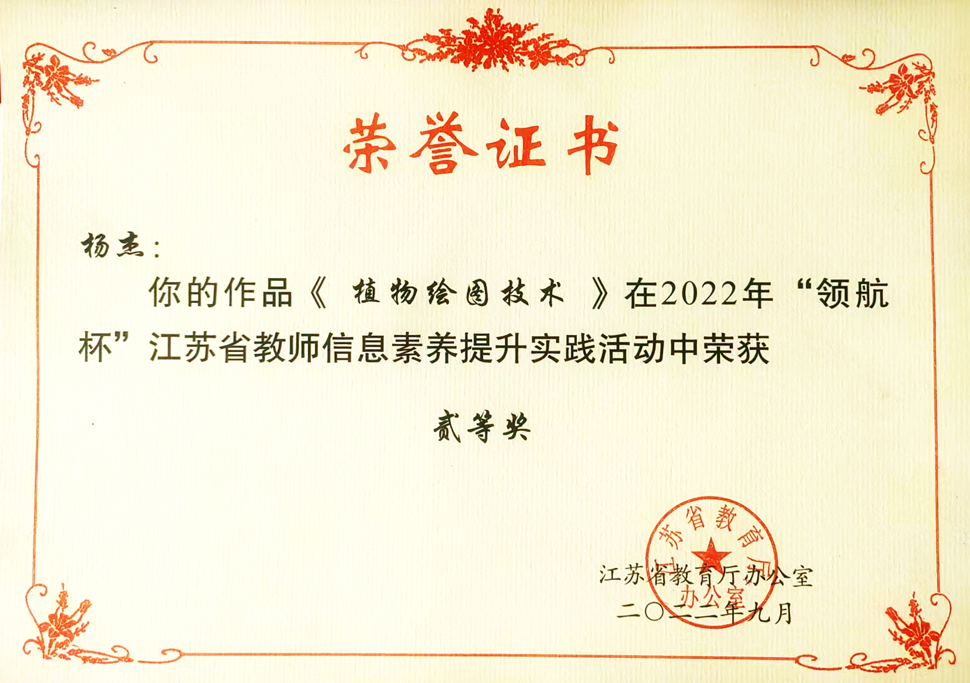 本次活动的主题是以习近平新时代中国特色社会主义思想为指导,围绕加快教育现代化、建设教育强国、办好人民满意的教育,以“推进教育数字化战略,促进教育高质量发展”为主题。杨杰老师此次荣获的“研讨作品”依托在研的江苏省教育信息化研究专项课题《基于虚拟现实技术的植物形态解剖课程教学实践与研究》,总结历年来的比赛经验与技术手段,不断探索数字化教学的边界,选取了教学重点难点作为内容,内容聚焦、主题突出,既能解决实际教学重点难点,并已用于实际教学,学生学习效果突出。