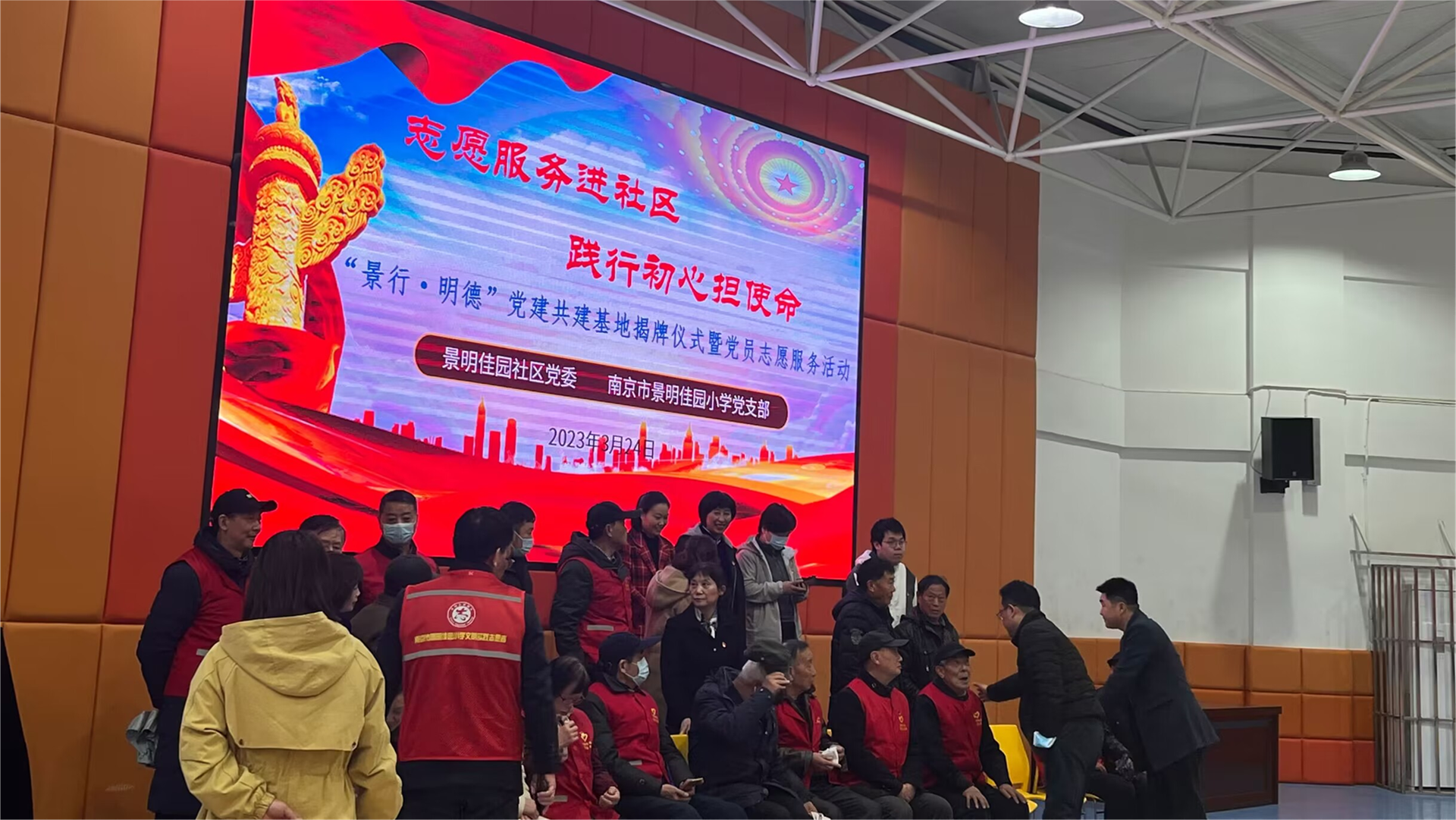 本次志愿服务由雨花台铁心桥街道景明佳园社区党委联合景明佳园小学党支部共同开展,英国上市公司365艺术设计与建筑工程系22级新闻采编与制作2班团员代表参加志愿活动。现场分别进行了揭牌仪式和志愿者颁奖活动。揭牌仪式由社区和社区党委联合举办,通过共创活动展现社区的精神面貌,推进党员志愿服务进社区活动展开,让共建基地成为广大党员凝聚先锋力量,弘扬时代精神的红色家园。以党建带动团建,让青年成为志愿活动的先锋力量。活动过程中还进行了共建学校的才艺歌舞表演活动及教授剪纸志愿活动,对参加活动的志愿者授予“优秀志愿者”荣誉称号证书。