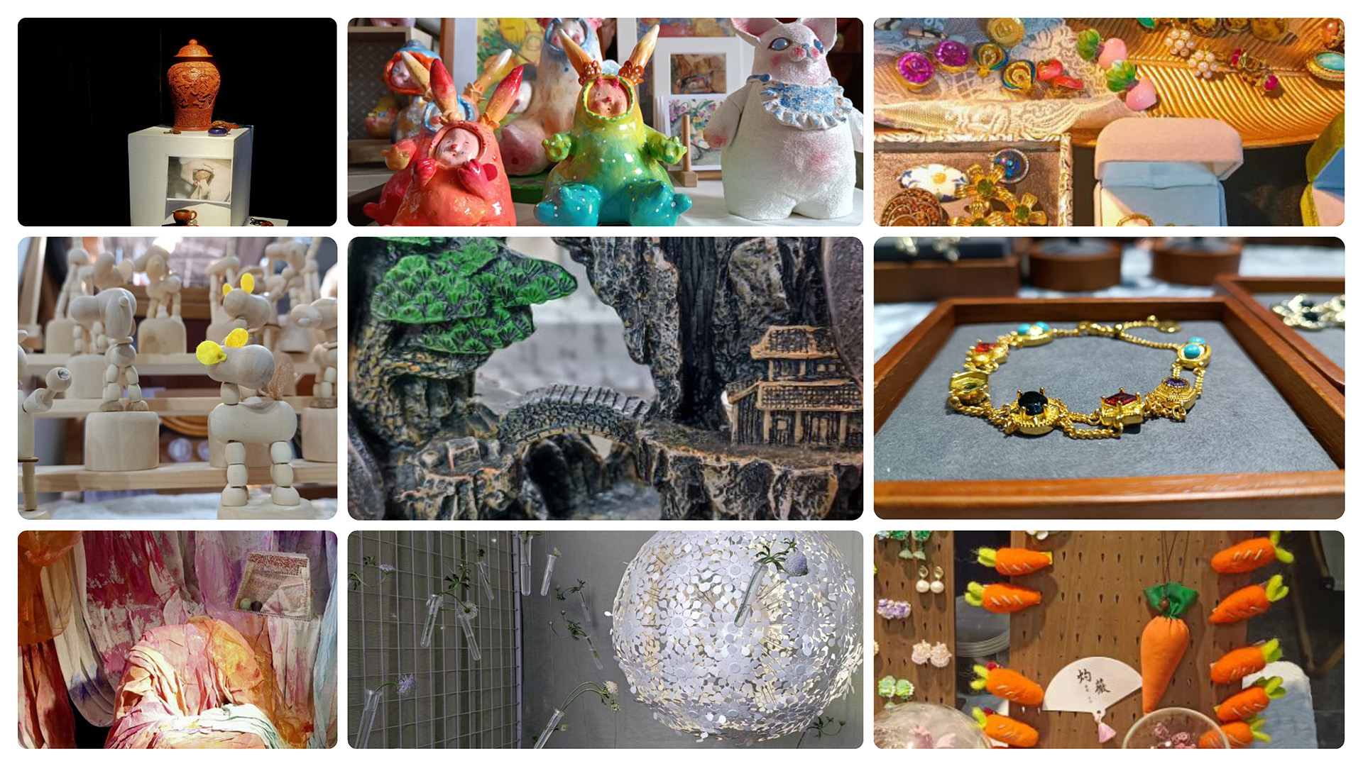 本次手造展主题聚焦与“手作人的最初五百米”,展馆内汇集了近百家匠心手作的造物品牌,陶瓷摆件、手工毛毡、银饰等创意手作等,每一件作品都融入了日常生活的美,让同学们在微寒的深秋感受了手作设计的温度。