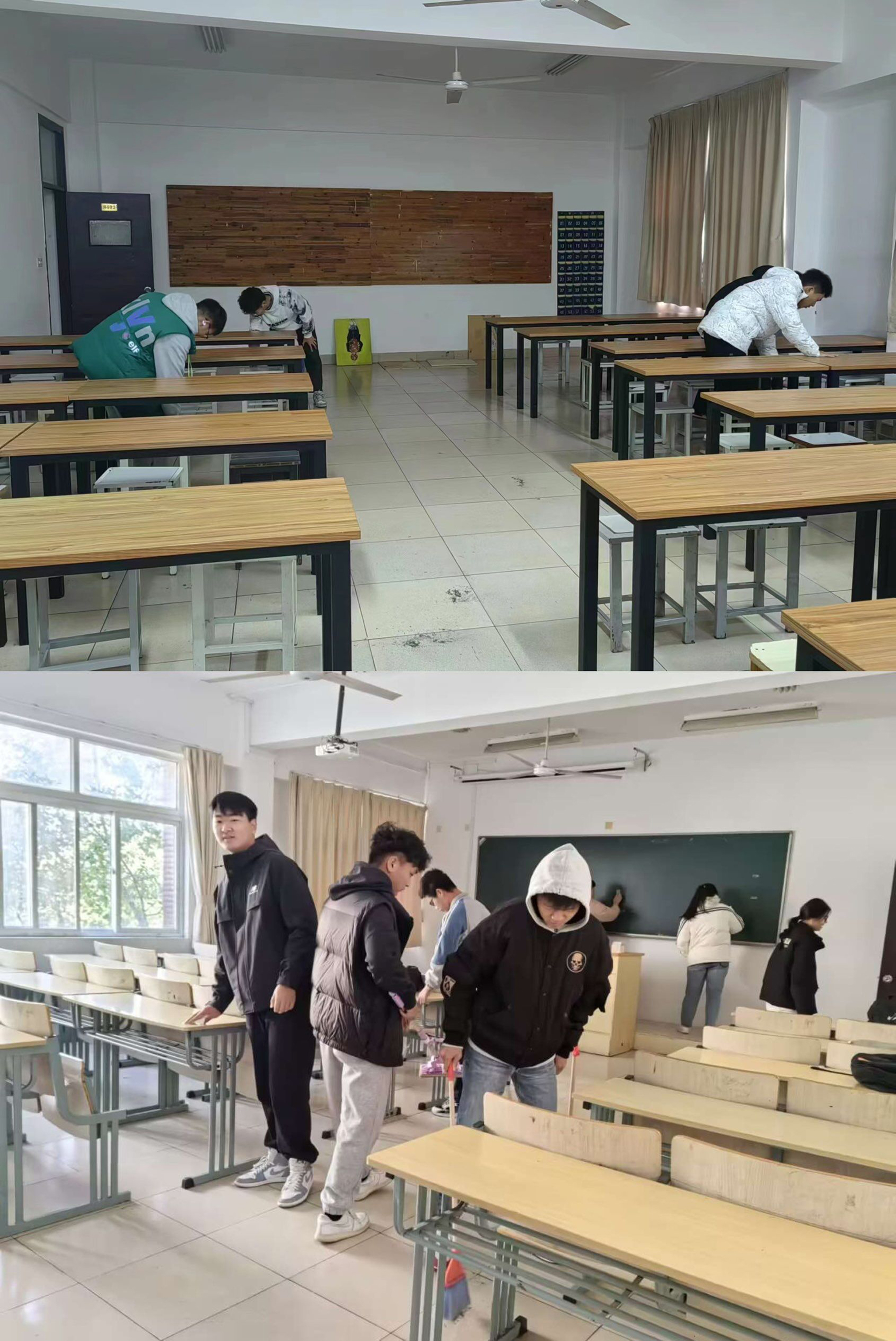 23级工程造价专业的学生在班委的带领下有序组织了一场班级劳动教育活动。在晚自习结束后,拿上打扫卫生的劳动工具,将每一间晚自习教室整理的干净整洁,同学们也在实践中体会到劳动的意义。主动养成劳动的好习惯,形成良好的精神面貌,有助于个人综合素质的提升。