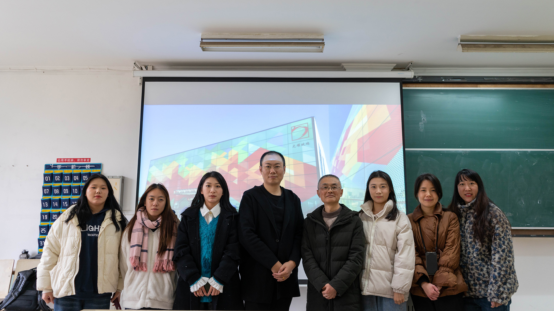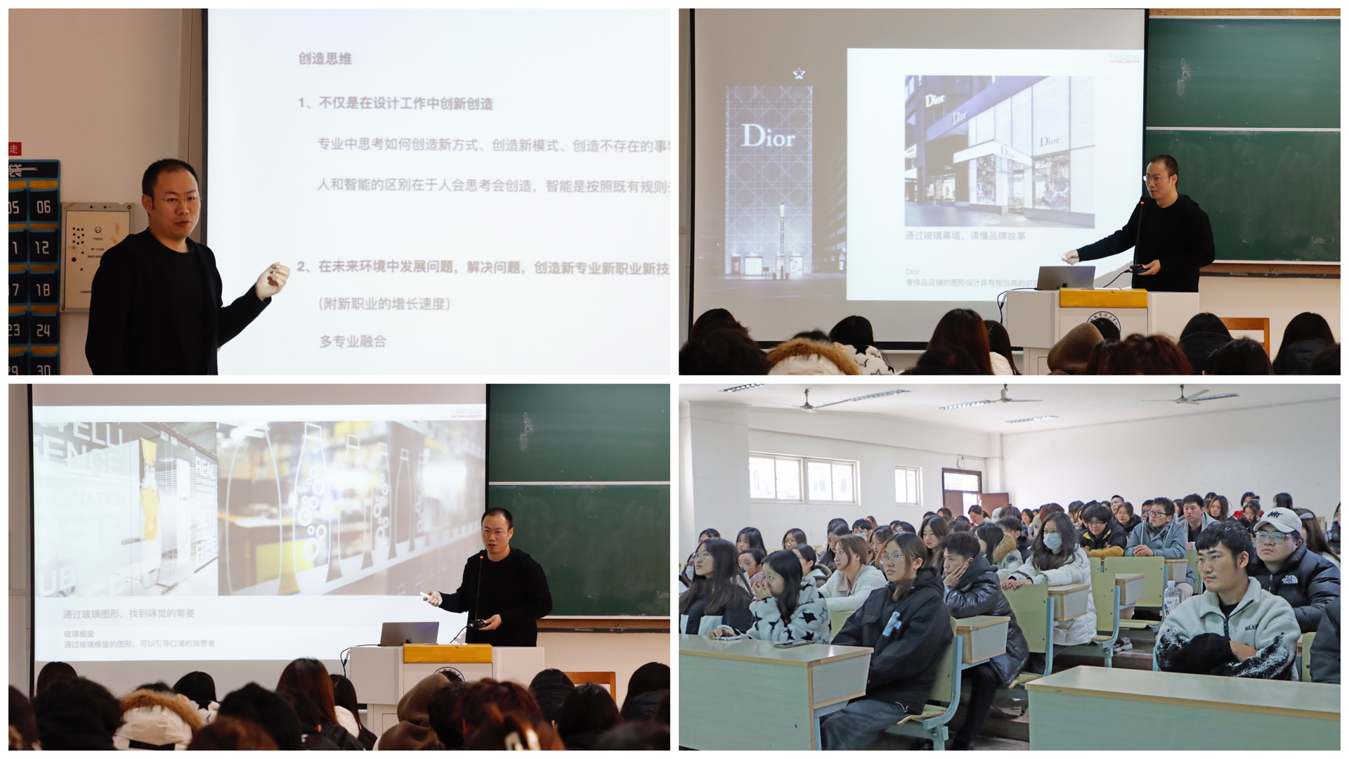 为提升数字媒体技术专业学生的职业意识和素质, 拓展学生的知识范围,数字媒体技术在行业内的应用,积极开展好“企业专家进校园“系列讲座计划。2023年11月30日,艺术设计与建筑工程系邀请江苏龙耀新材科技有限公司(以下简称龙耀科技)高级设计师陈海峰开展《建筑玻璃艺术创想——艺术与材料的融合设计》主题讲座。讲座由数字媒体技术专业负责人陈青阳主持,2022级和2023级数字媒体技术专业的同学和班主任聆听了本次讲座。