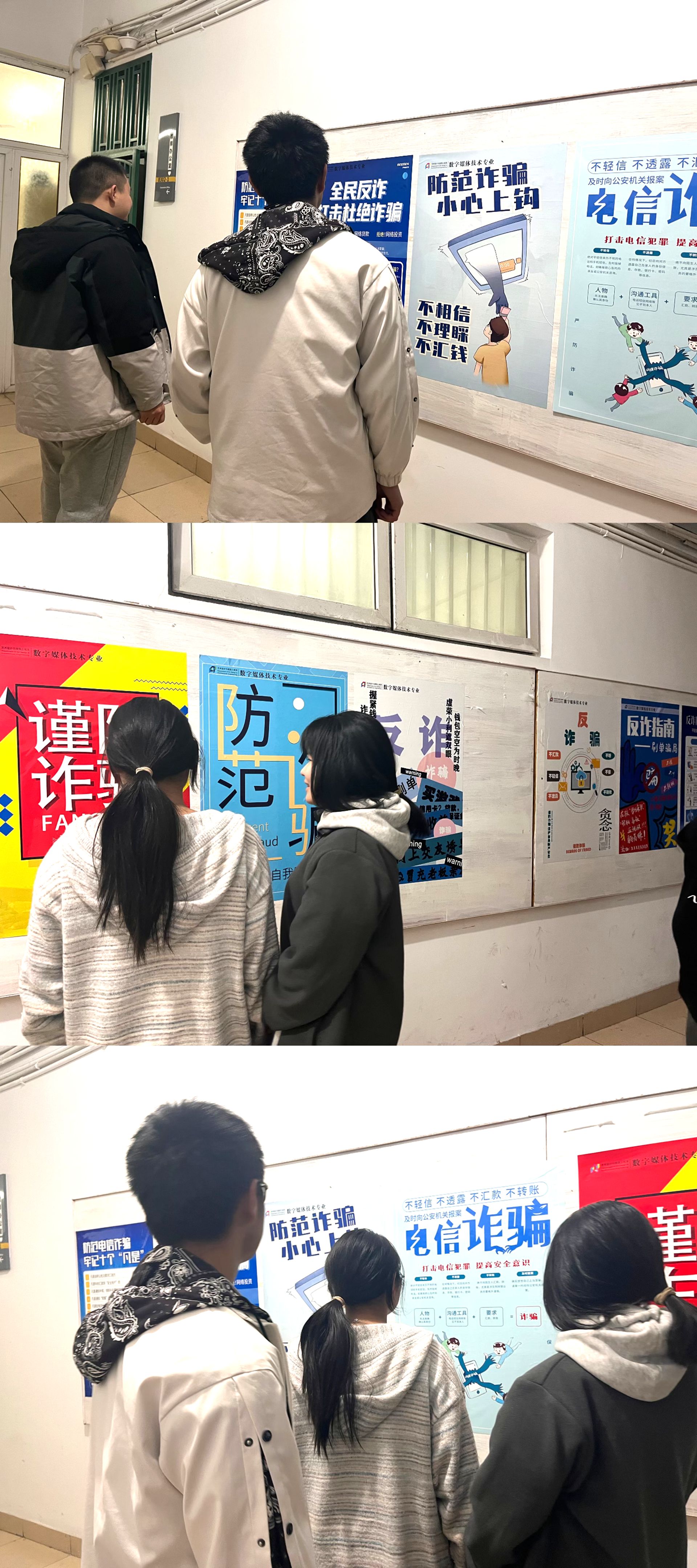 我系为让师生更全面的了解各类诈骗类型,特设系部防诈宣传墙,以丰富的海报形式将反诈知识引入师生的日常生活,组织学生前往宣传墙学习相关知识,提升自身反诈能力水平,不断推进反诈工作常态化。