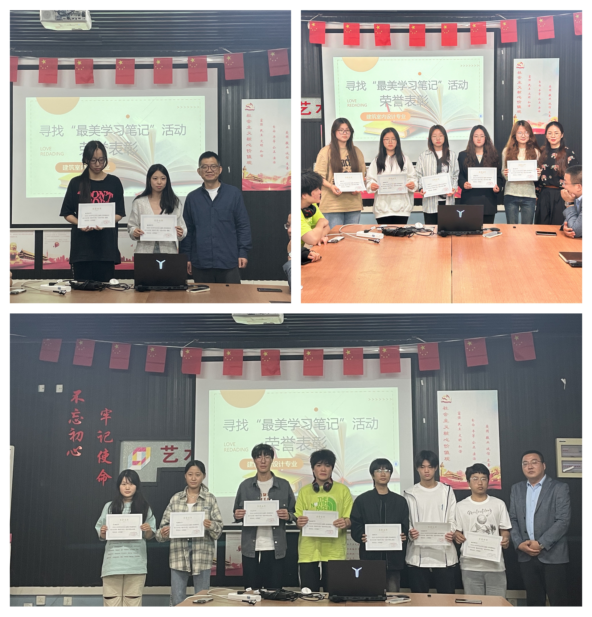 指尖留墨,笔肆泌香。笔尖落下的瞬间,是时间的芳华。而笔记是知识的凝练,是课堂的回顾,承载着教师的授课精华,凝聚着学生的听课心得。艺术设计与建筑工程系2023级建筑室内设计专业于4月8日至4月25日开展寻找“最美学习笔记”活动。系主任周卫、系党支部书记杨春娟、系副主任陆松参加本次活动的表彰会现场。