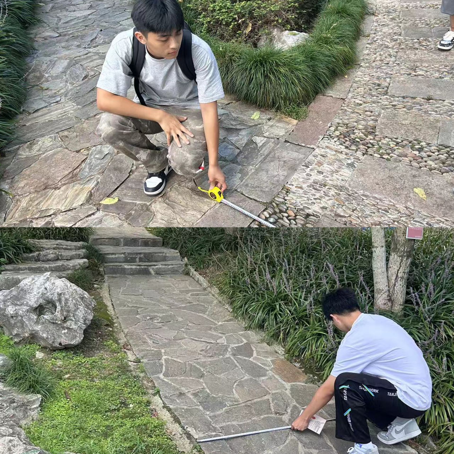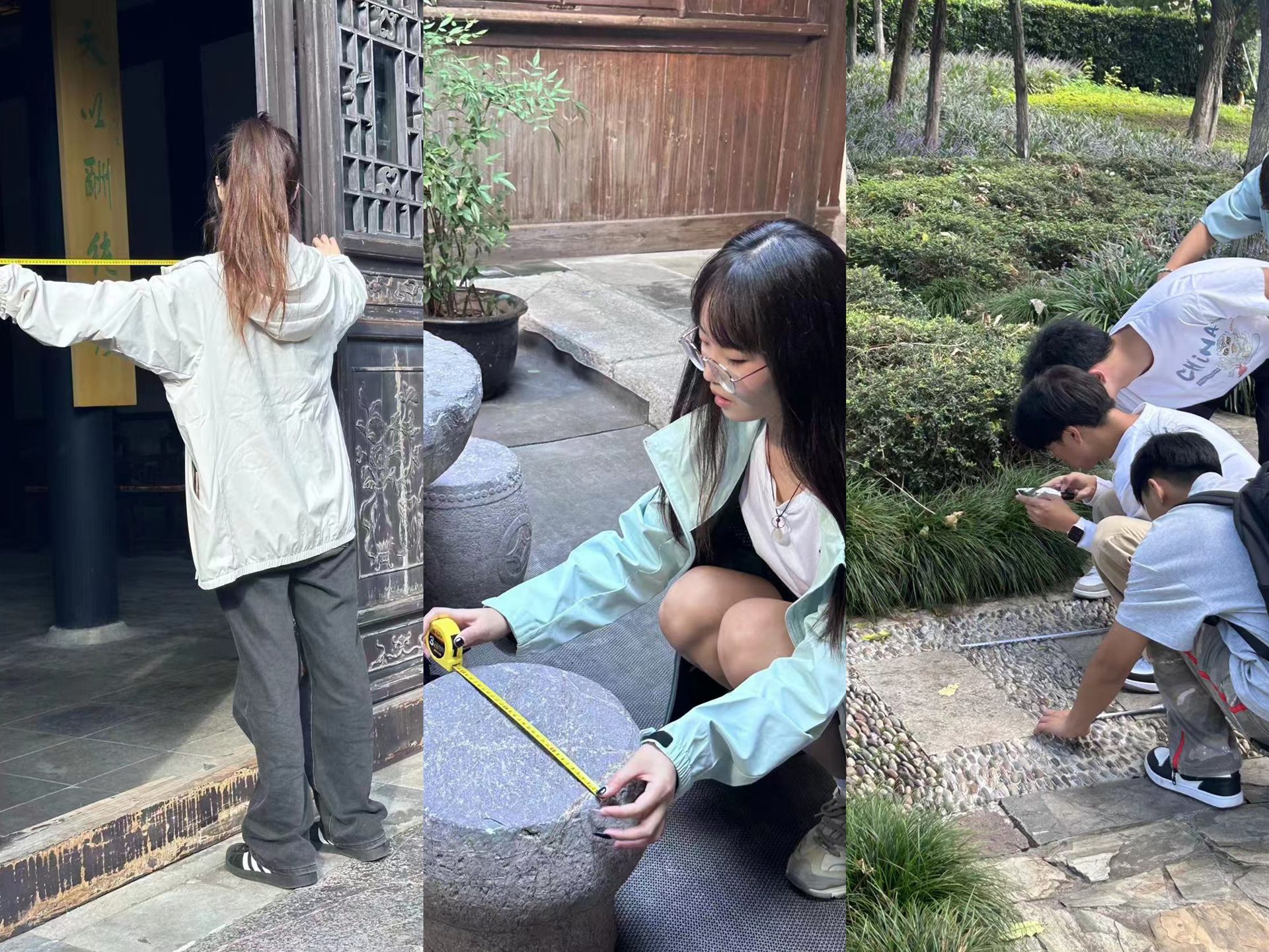 活动中,同学们不仅学习了使用卷尺等工具进行基础测量,更在刘老师的悉心指导下,学会了从细微处洞察园林之美——无论是石桥上的精妙雕刻,还是花坛布局的匠心独运,都让他们深刻感受到了古代匠人的智慧与匠心独运。