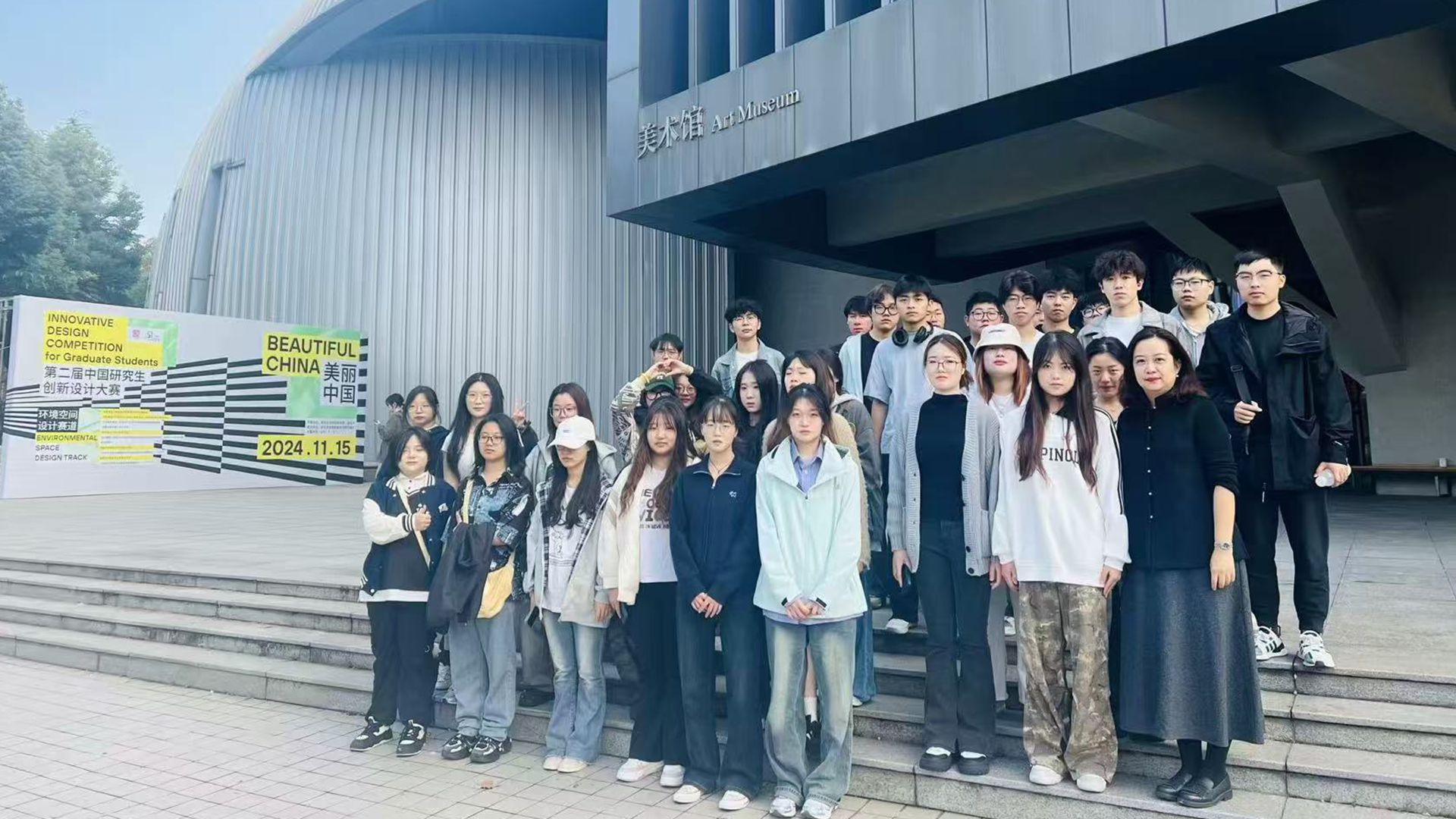 2024年11月14日,在专业教师周倩的带领下,环境艺术设计班的同学们来到南京艺术学院美术馆参观,享受了一场艺术与文化的盛宴。南京艺术学院美术馆,坐落于南京艺术学院校内,以其独特的建筑风格和丰富的艺术藏品,成为南京乃至全国艺术爱好者心中的圣地。