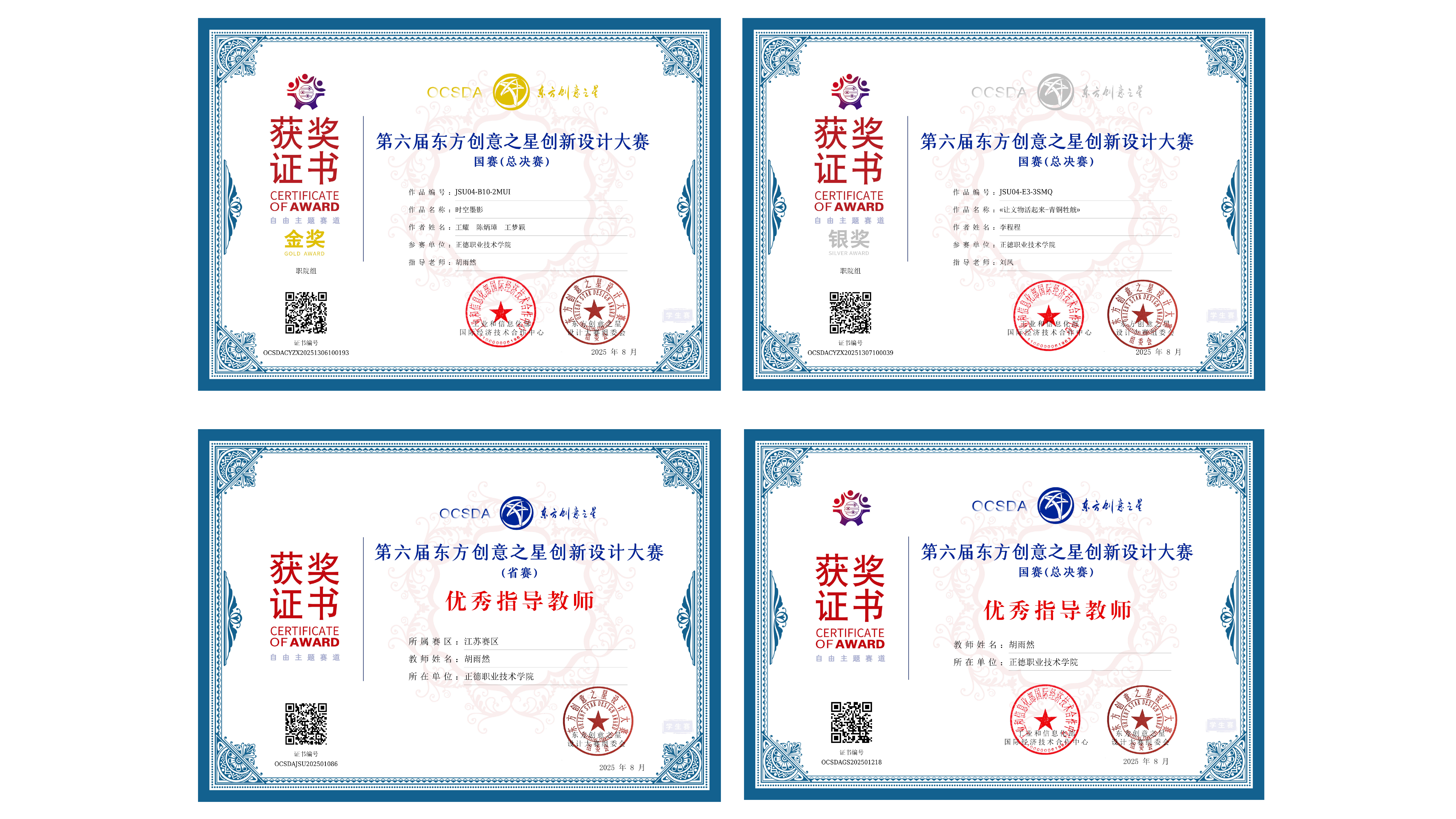 在刚刚落幕的第六届“东方创意之星”设计大赛中,我院艺术设计与建筑工程系数字媒体技术专业24级学生取得了优异成绩,展现了卓越的创造力和专业技能。胡雨然老师凭借出色的指导,分别荣获省赛和国赛优秀指导教师奖,彰显了我院专业教学的高水平。