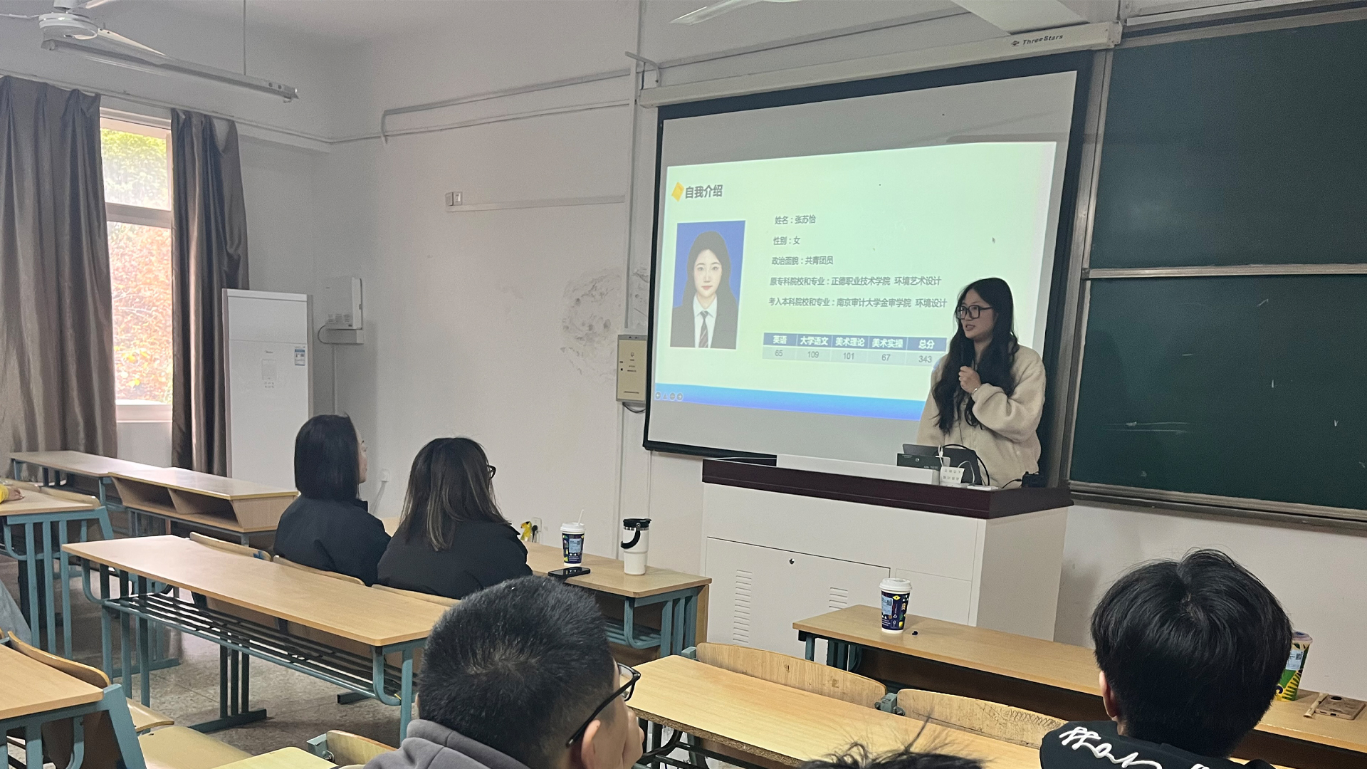 本次分享会邀请2022级环境艺术设计专业优秀校友张苏怡返校交流。她在今年专转本考试中以343分的成绩考入南京审计大学金审学院环境艺术设计专业。张苏怡结合当前就业趋势,系统分析了专转本的优势,并围绕考试科目、分数线、可选专业、复习规划及应试技巧等方面展开分享,鼓励学弟学妹坚定信心、科学备考,为人生发展争取更多可能。在随后的互动环节,同学们踊跃提问,就复习方法、资料选择与时间安排等问题与学姐深入交流,现场氛围融洽活跃。