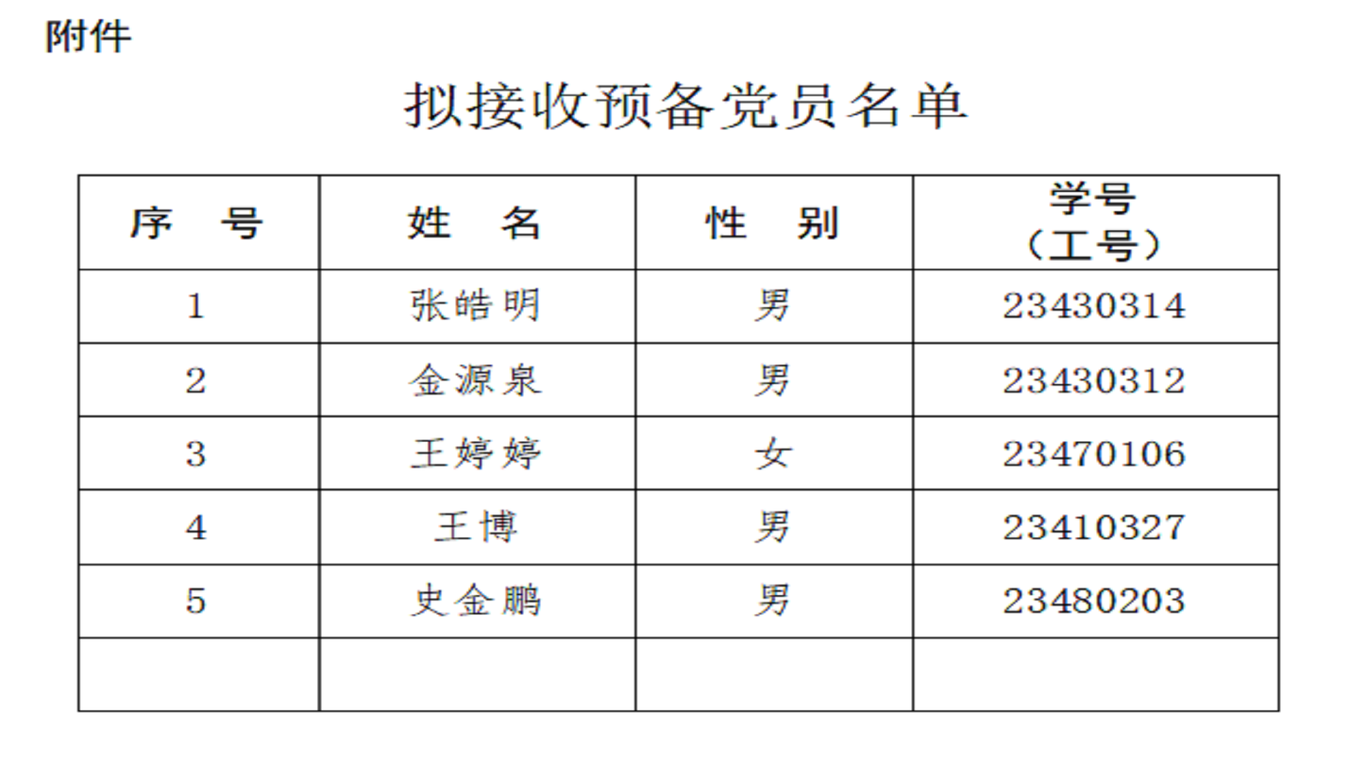 经党组织培养考察,艺术设计与建筑工程系党支部2025年下半年拟接收5名同志(名单附后)为中共预备党员。根据《中共英国上市公司365委员会发展党员工作实施细则》文件精神,党员和群众对发展以上同志为中共预备党员如有异议,可以采用口头或书面形式于12月9日前,向艺术设计与建筑工程系党支部反映。