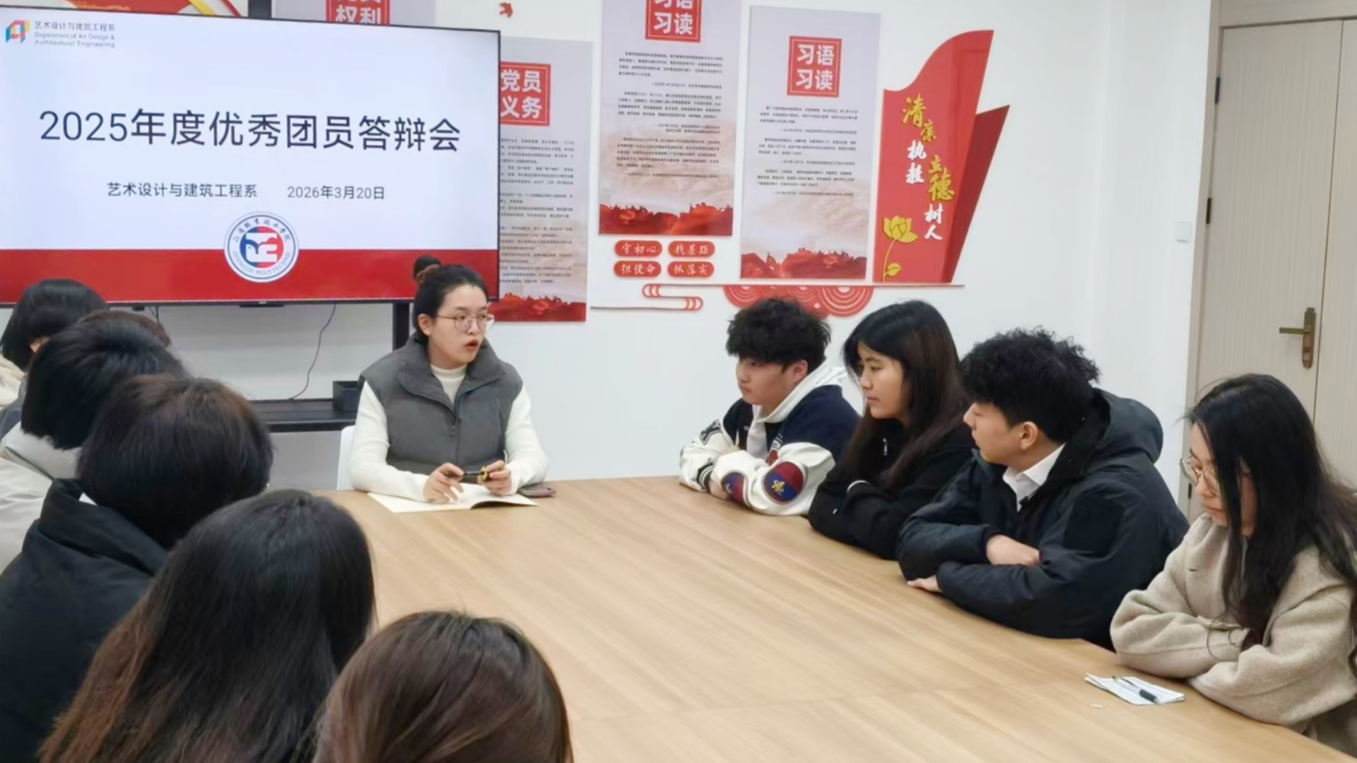 为进一步增强团组织的凝聚力和战斗力,加深团员青年对团学工作的理解与认同,激励广大团员、团干部积极进取、奋勇争先,艺术设计与建筑工程系组织开展了评选2025年度红旗团支部、优秀团员、优秀团干部、优秀团员标兵的系部答辩会。此次活动为团员青年们搭建了展示自我、交流学习的平台。