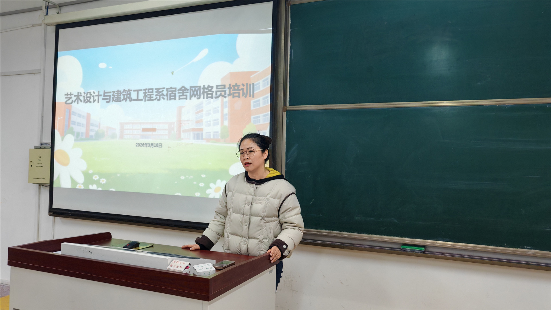 为进一步加强学生宿舍安全管理,提升网格员队伍的专业素养与应急处置能力,3月18日中午,艺术设计与建筑工程系在9308教室举行公寓网格员专题培训会。本次培训由王家甲老师主讲,系党支部书记杨春娟出席会议并作总结讲话,全体公寓网格员共240余人参加培训。