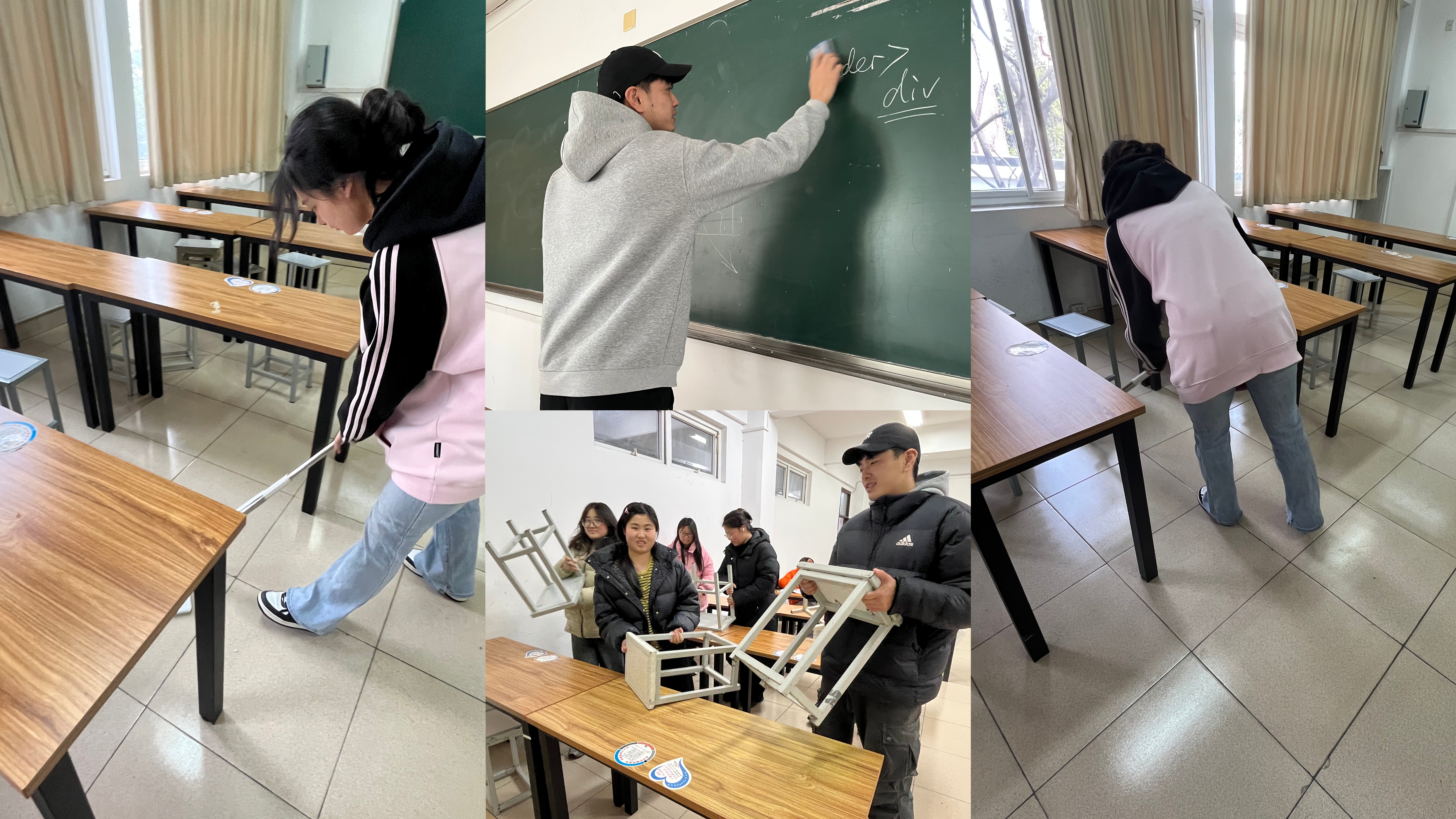 良好的学习环境是高效学习的重要保障。新学期伊始,面对教室桌椅摆放杂乱问题,系部组织开展了教室环境整理活动。同学们分工合作,有的整理桌椅,还有的擦窗户,大家一边干活一边有说有笑,气氛十分融洽。经过一天的辛勤劳动,教室环境焕然一新,地面干净整洁,桌椅排列整齐,黑板和窗户明亮如新。“看到整洁的教室,心情都变好了,学习也更有动力了!”整理后,同学们纷纷表示。此次活动不仅培养了学生的劳动观念,更增强了集体荣誉感,让雷锋精神在劳动实践中得到传承。