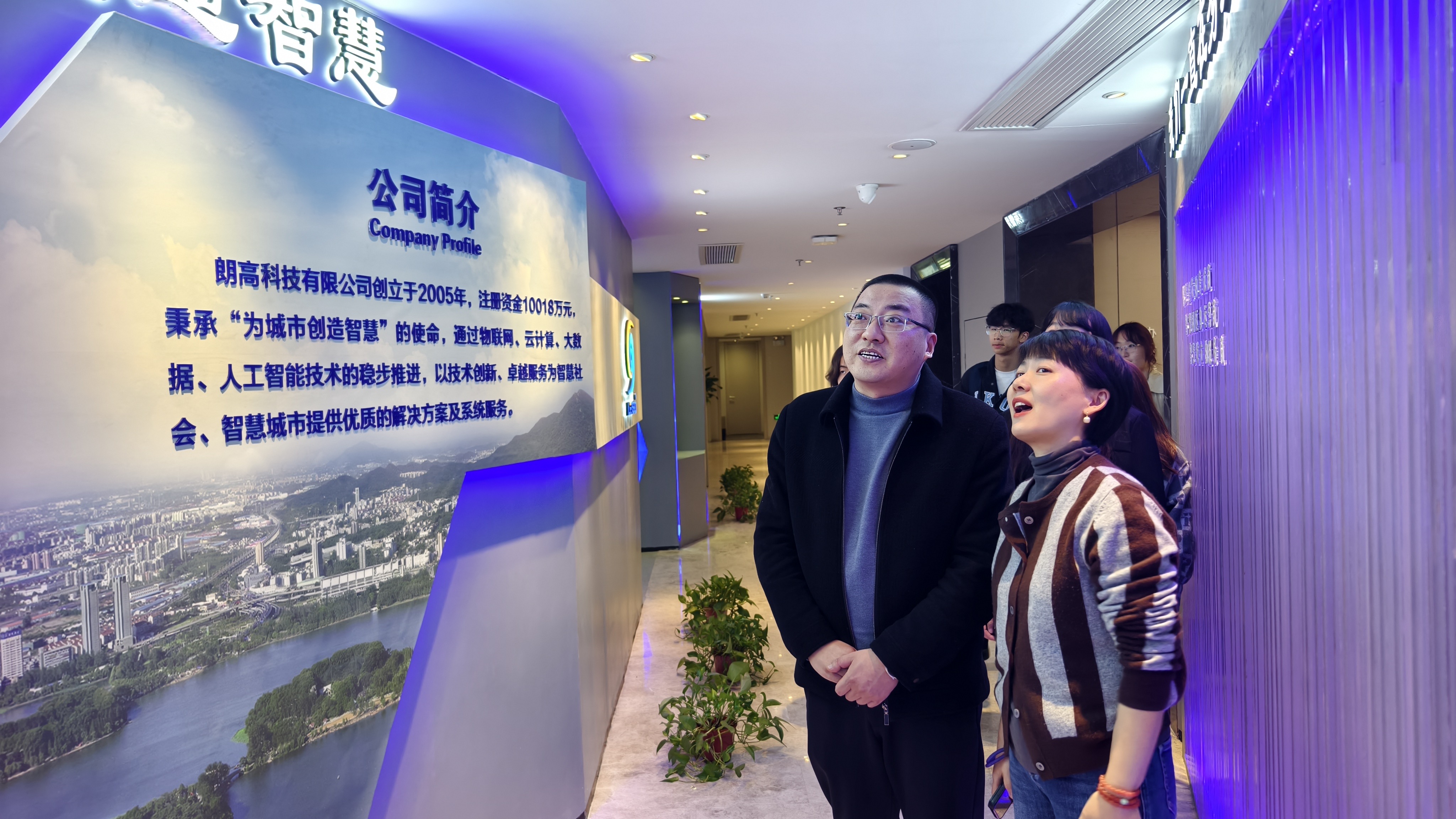 在走访过程中,师生们实地参观了公司的展厅与办公空间,全方位、详细地了解了企业的发展历程、业务布局以及当下的人才需求状况。朗高科技以建筑智能化业务作为核心业务,近年来积极开拓进取,大力拓展低空经济这一新兴业务领域。公司重点打造“银发飞超”赛事,并配套建设了线上商城。随着业务的不断拓展,企业对新媒体运营、项目品牌包装等方面的复合型人才需求极为迫切。