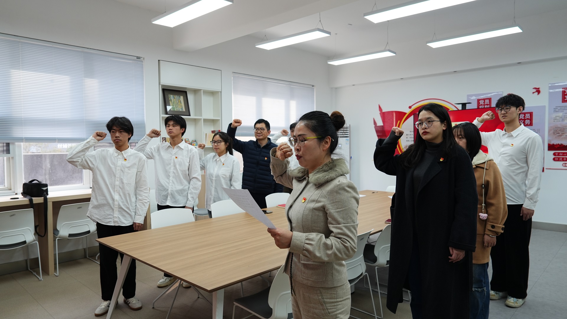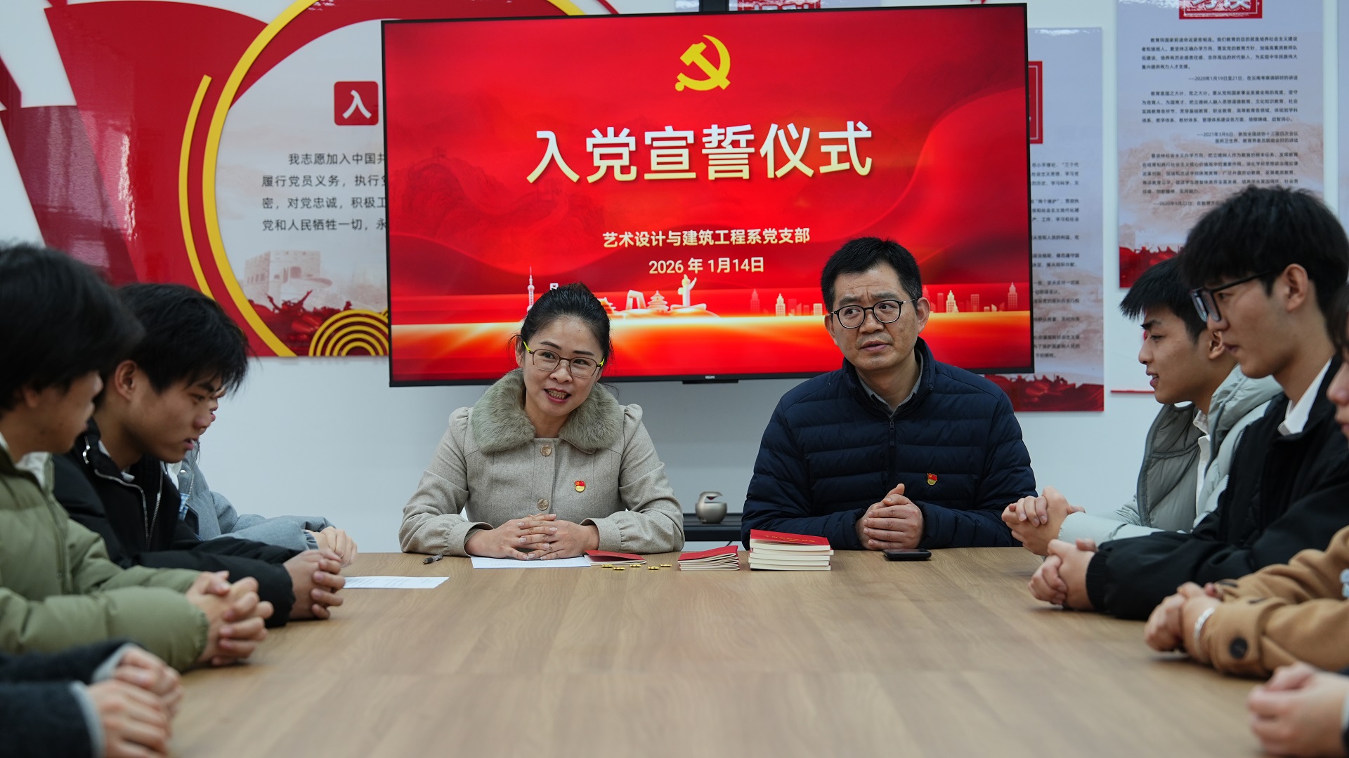 2026年1月14日下午,艺术设计与建筑工程系在8202“教工之家”举行新党员入党宣誓仪式。系党支部书记杨春娟主持仪式,系主任周卫作总结讲话,全体新发展党员及其培养联系人到场参加。