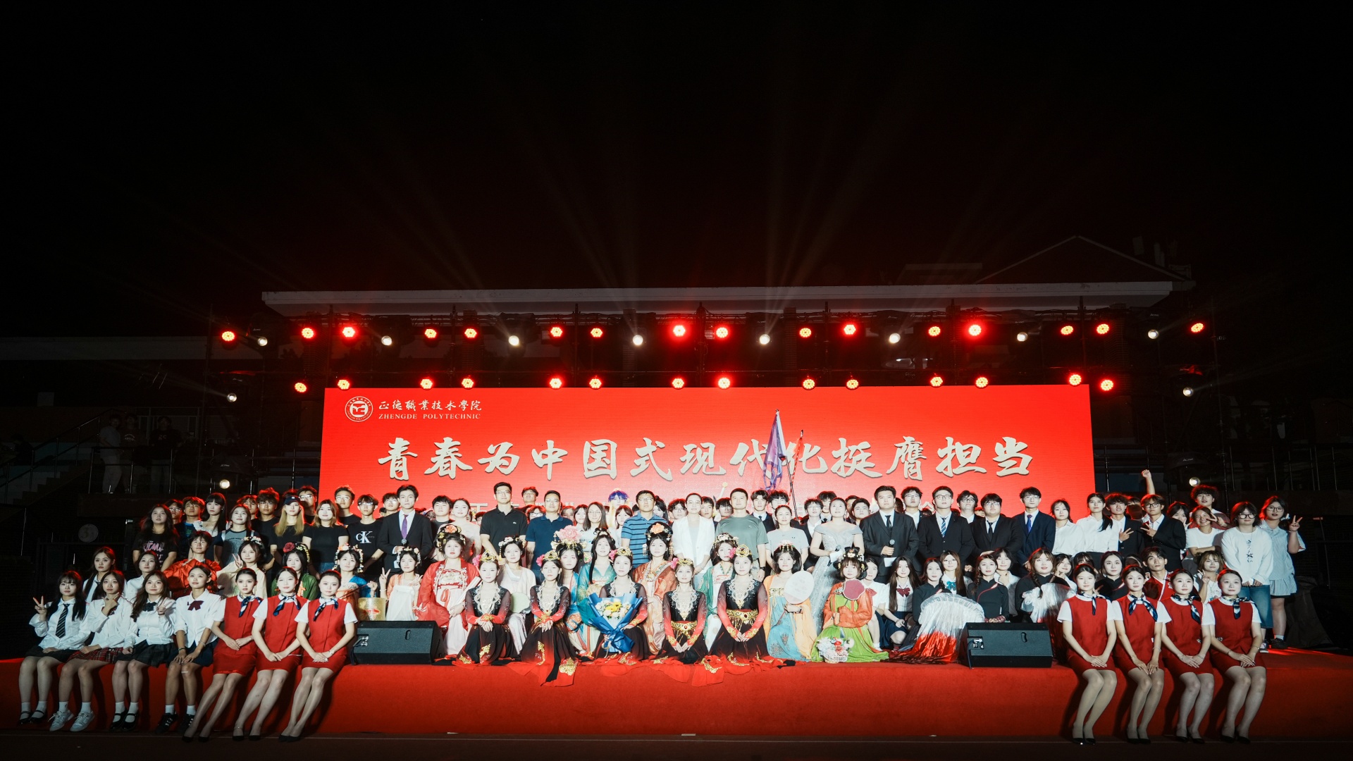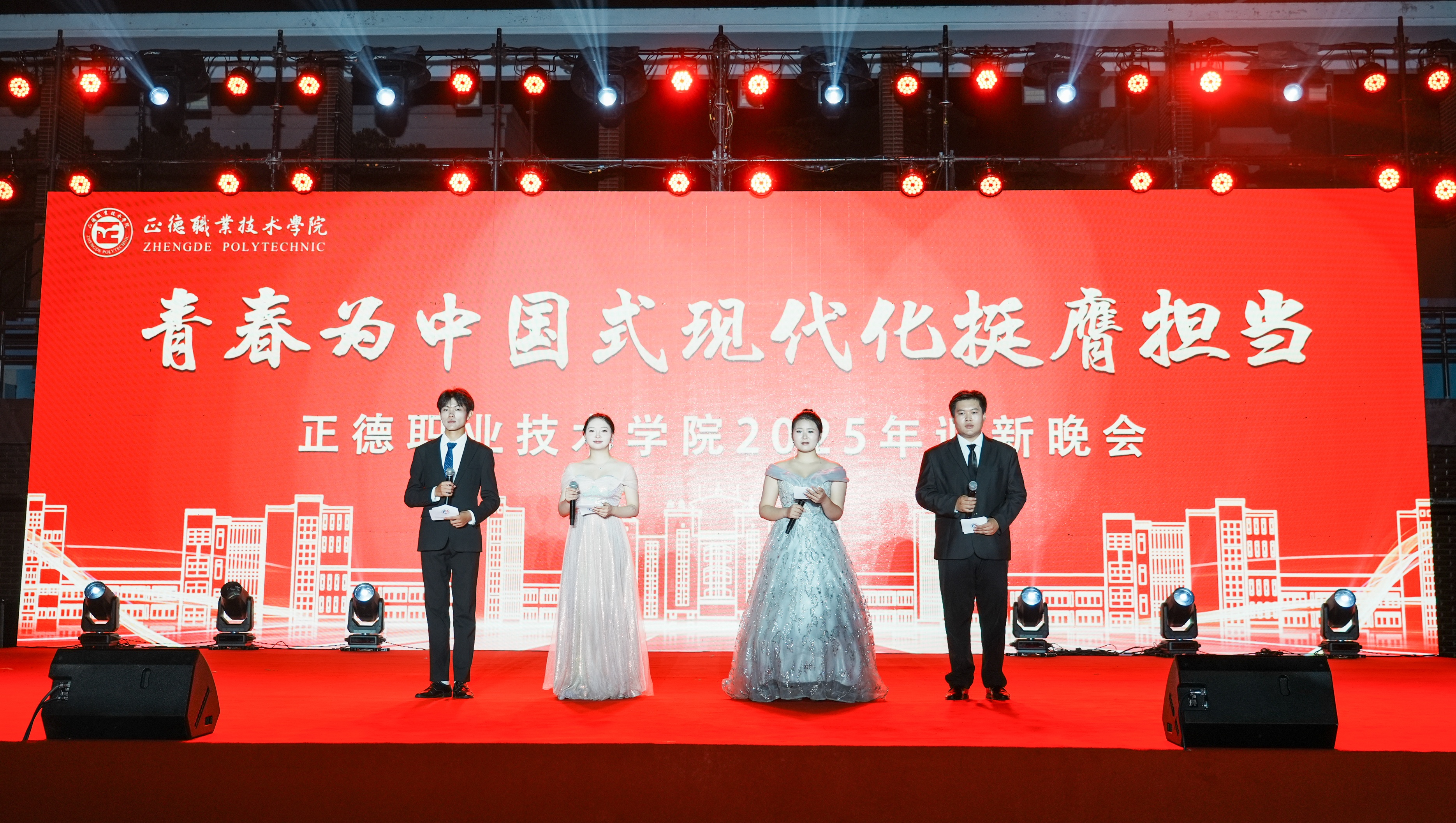 9月28日晚,“青春为中国式现代化挺膺担当”2025年迎新晚会在田径场精彩上演。院党委副书记、副院长梁薇,相关单位负责人与2025级新生齐聚一堂,同上一节美育大课。晚会融合歌、舞、走秀、朗诵、情景剧等多种表演形式,生动展示了朝气蓬勃、昂扬向上的正德学子风采。