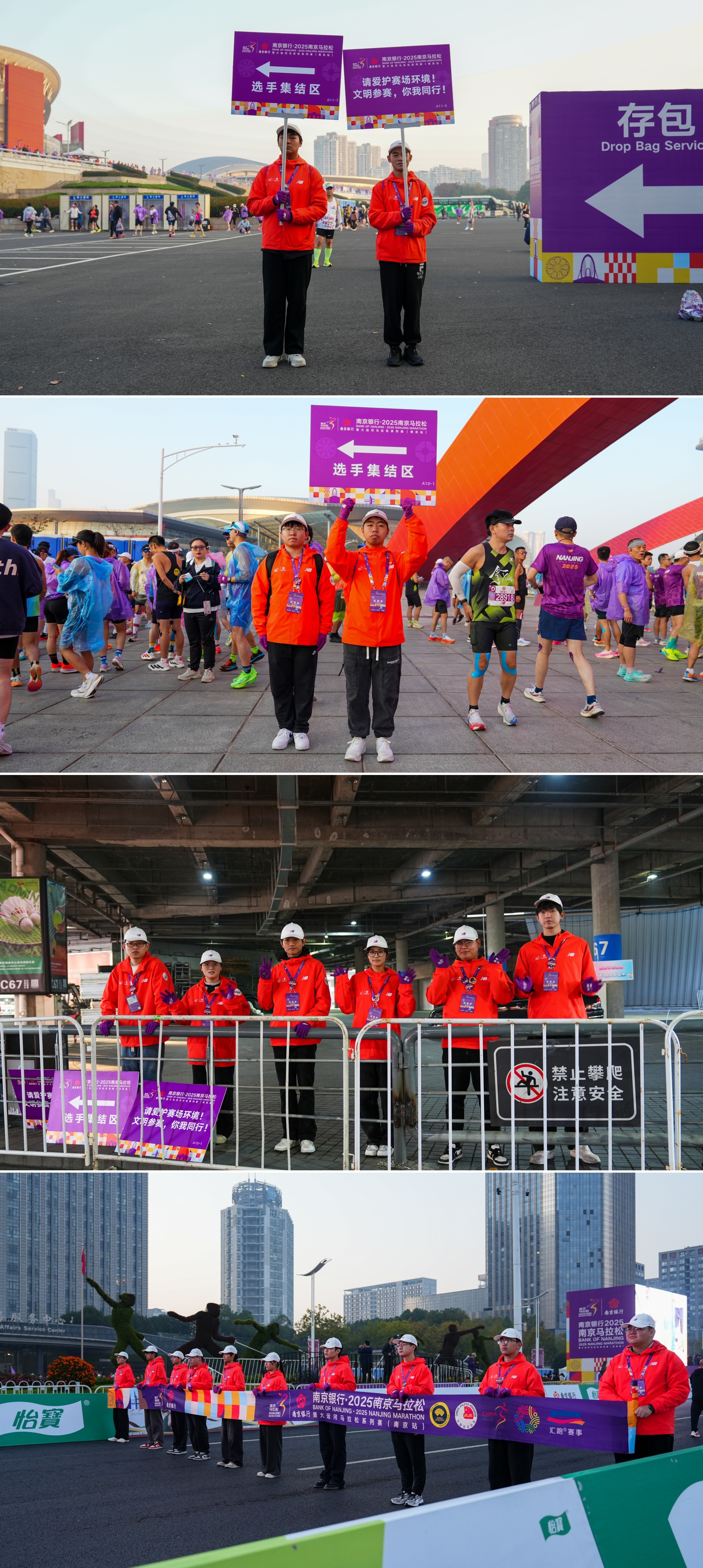 在这场“速度与激情”的背后,有这样一群赛事志愿者与万名参赛选手携手并肩,他们用满腔的热情、专业的服务、暖心的保障全程护航南京马拉松,共赴这场奔跑与护航的约定,以青春接力传递着南京温度。