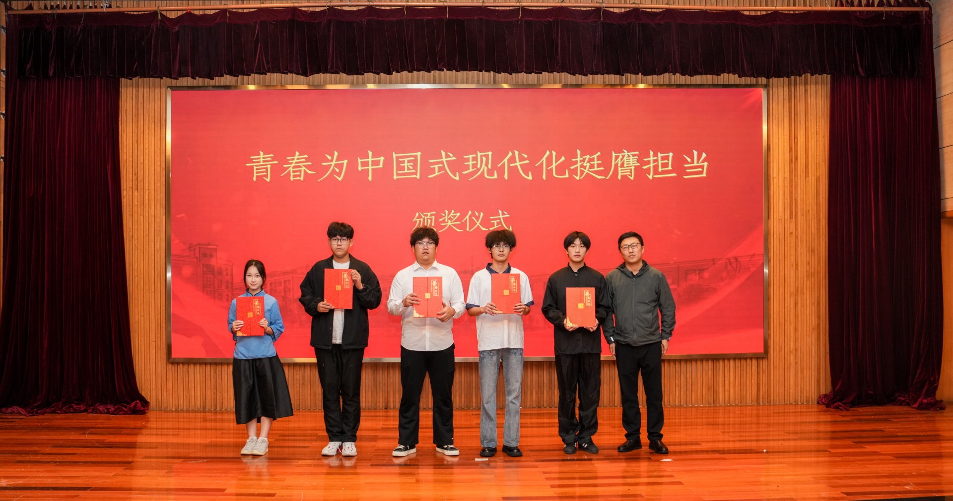在各班团支书通过PPT、视频等形式围绕思想引领、组织建设、志愿服务、社会实践、文体活动等方面展示本支部发展过程和特色建设基础上,各班团支部在汇报展演环节中以“青春为中国式现代化挺膺担当”为主题,采用情景剧、舞台剧、朗诵、合唱、舞蹈等多样形式展示了团支部青春的活力与风采。情景剧拉近了历史的距离,重温了党领导人民百年奋斗的艰辛探索,风雨兼程;舞台剧以独特的魅力与张力,鼓舞了新时代青年挺膺担当的精神;诗朗诵凝聚起惊涛骇浪中的豪情,字里行间饱含着对祖国的深情厚意,热忱满满;合唱引人入胜,旋律中流露出青年学生的蓬勃朝气,激情飞扬;舞蹈翩若惊鸿,每一个动作都诠释着青春的律动,活力四射。各团支部的表演展示了团支部积极向上、奋勇进取的精神面貌,展现出热爱生活、团结进步的良好氛围。