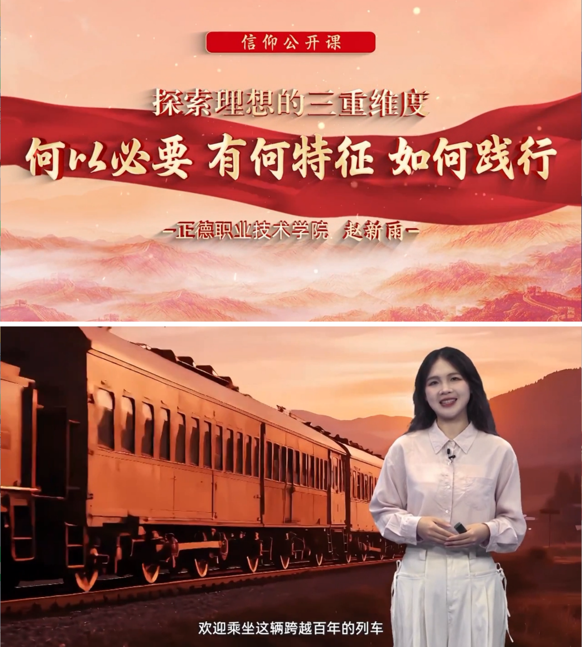 这节课由我院青年讲师团成员、思政教研部教师赵新雨主讲。课程以“探索理想的三重维度——何以必要、有何特征、如何践行”为核心主题,紧密结合历史与现实,生动且深刻地阐述了理想在不同时代背景下的重要意义、鲜明特征以及践行路径。赵新雨老师以“理想探索号”列车为线索,带领大家穿越觉醒年代、拼搏年代、幸福年代,用丰富的历史案例和鲜活的时代榜样,让团员和青年们深刻领悟到,理想不仅是个人奋斗的灯塔,更是民族复兴的强大动力,在社会主义中国,个人理想与国家命运紧密相连、休戚与共。