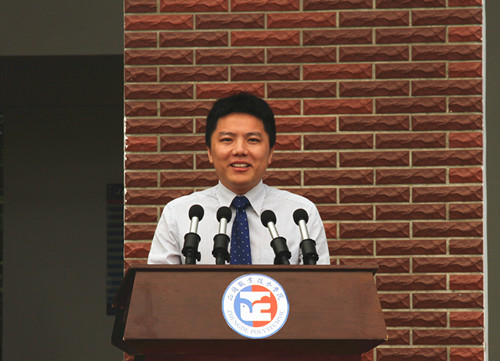 在奏唱国歌仪式后,基础教育系汪小艳老师,我院2010届校友李祥铭先生(现任北斗星通导航技术股份有限公司系统业务总监)分别发言,表达对广大新生的良好祝愿,并且对新生如何度过未来的大学生活提出中肯的建议。