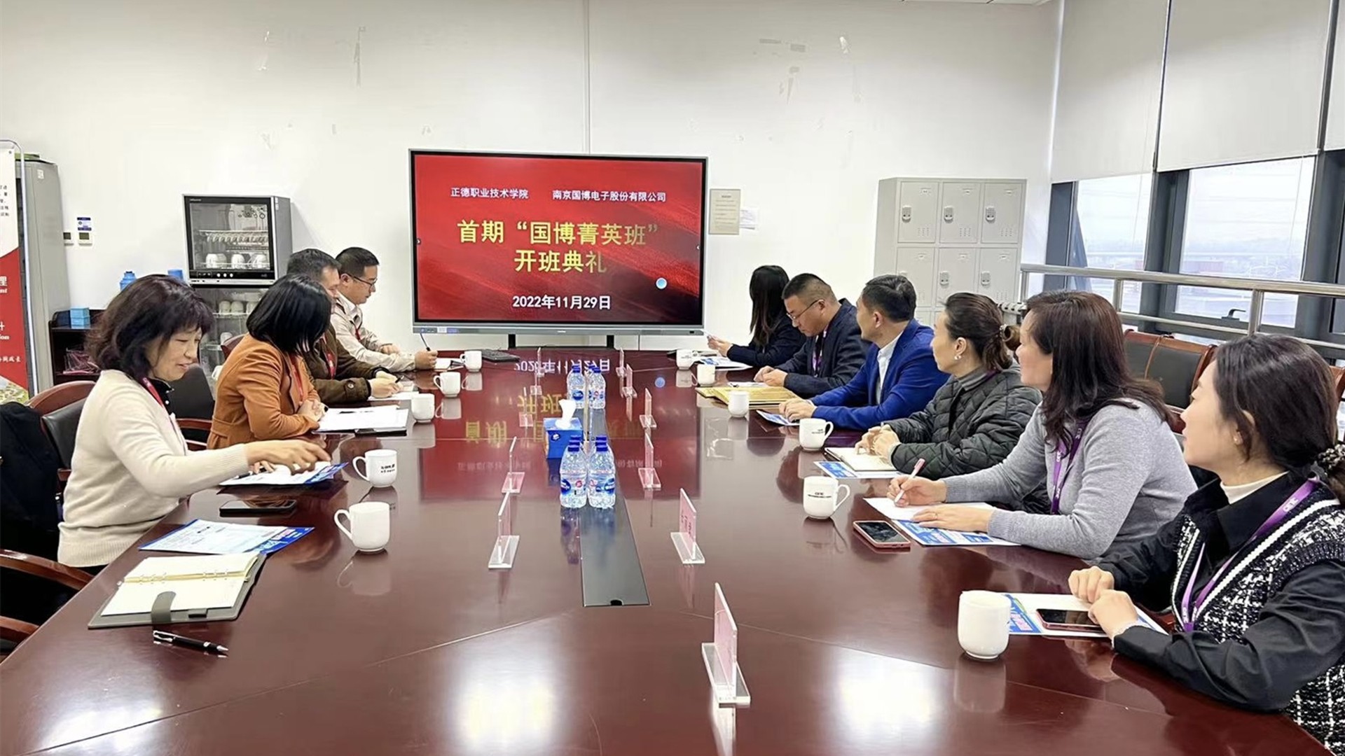 江爱华指出,正德学院深刻领会习近平总书记关于职业教育的重要指示和党的二十大精神、牢牢抓住职业教育创新发展的历史性机遇,加大制度创新、政策供给、投入力度,主动服务国家发展、行业需求、企业期盼,坚决贯彻落实中央的决策部署。学院与国博公司本着推进高职人才培养模式改革、服务国防军工行业发展的共识,以校企深度融合为基础、以校企双主体协同育人为目标,共建正德学院“国博菁英班”。“菁英班”是正德学院与国博公司产教一体、校企一体、工学一体联合培养未来高素质技能人才的新模式、新理念、新实践,将聚焦一体化的校企深度合作、产教深度融合,以服务国家战略需求为牵引,锻造具备工匠精神,精操作、懂工艺、会管理、善协作、能创新的能工巧匠、大国工匠为目标。