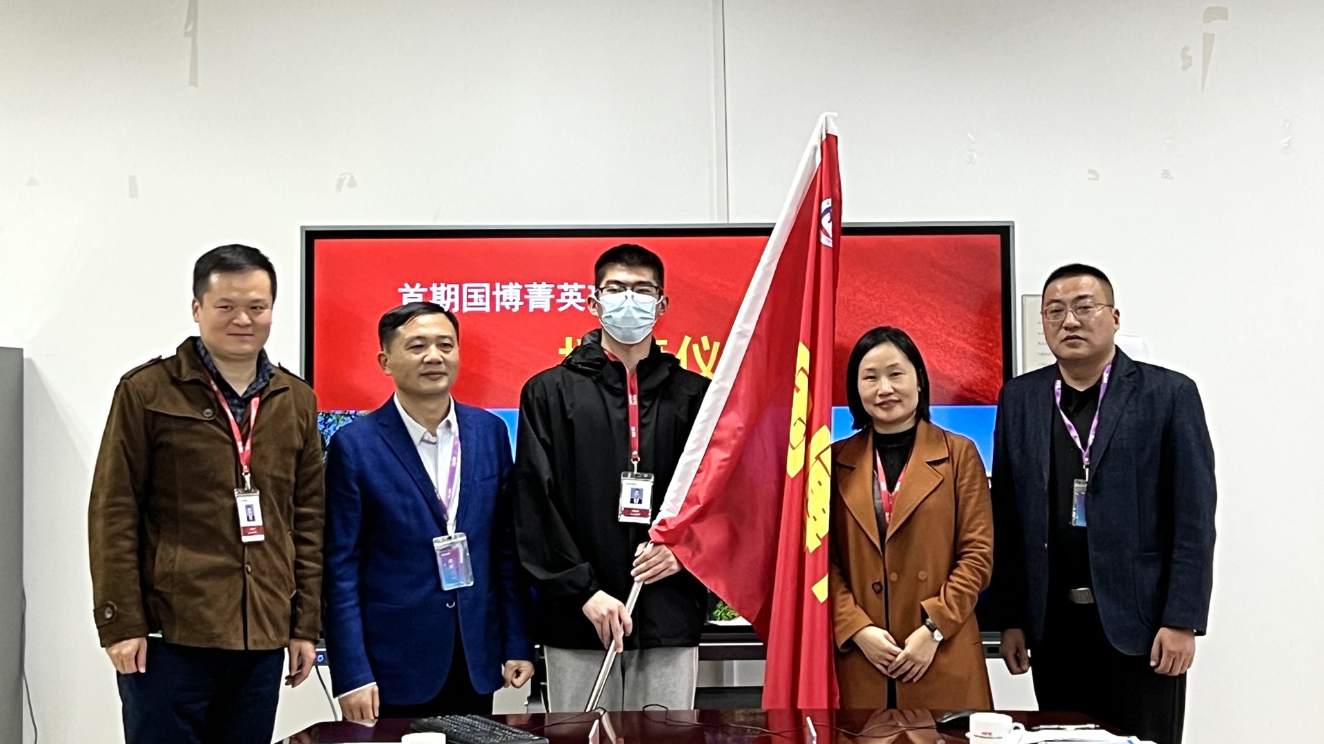 陆松介绍了首期“国博菁英班”筹备情况。自去年10月江爱华副院长带队首次赴国博调研考察以来,到今年10月江爱华副院长再次带队赴国博洽谈交流,正德学院和国博电子的校企合作逐步成型、成熟、成效、成势。首期“国博菁英班”面向智能制造、智能装备、信息技术专业群,通过线上报名、系部选拔、企业面试,最终遴选了18名优秀学生组班。江爱华、孙春妹一同为“国博菁英班”授旗。
